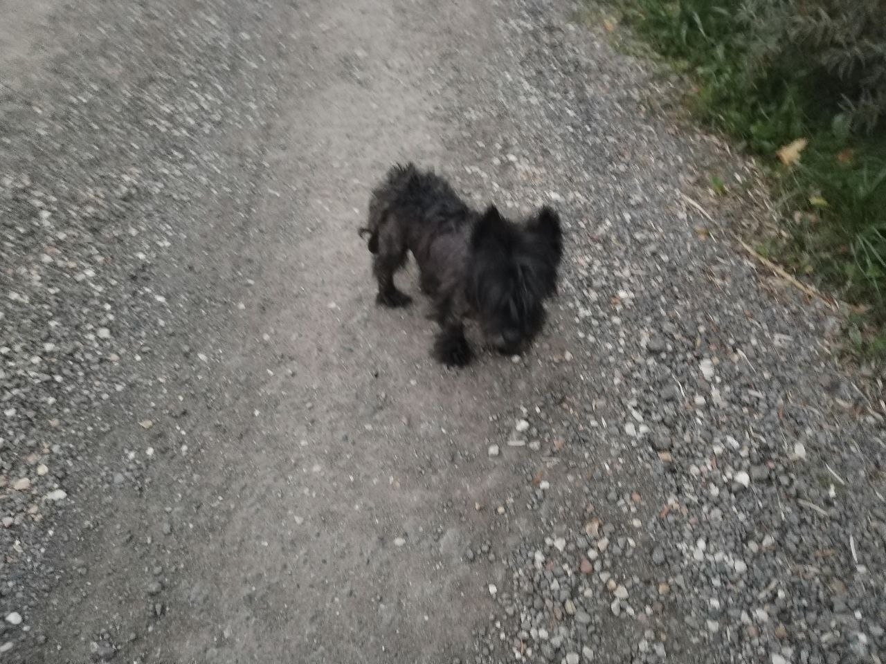 Бегает и пока на передержке предположительно скотч терьер,молодой, с ошейником, в очень плачевном состоянии.