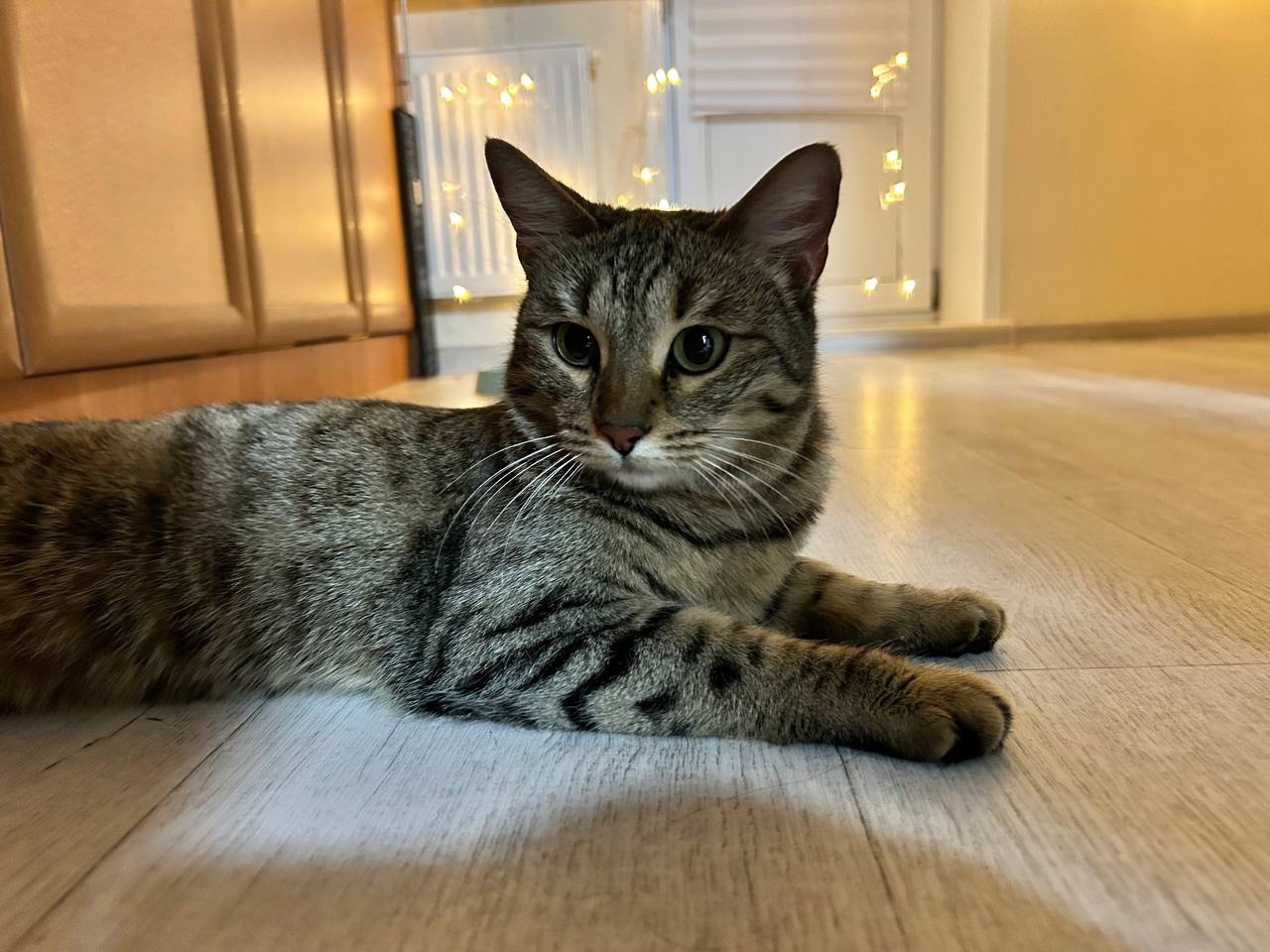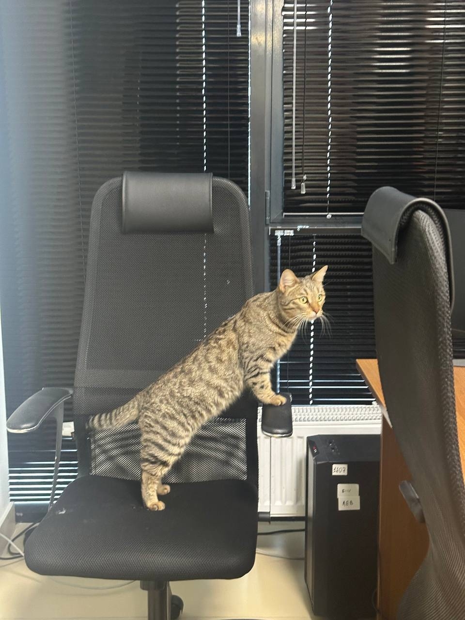 Нашлась кошка. Ласковая, приученная к лотку. Ест и обычную еду, и кошачий жидкий корм. Очень разговорчивая, большие ушки, вытянутая мордочка. В холодный день забежала в офис погреться в 18:00 16.12.2025, ЖК Танго, была в стрессе, выгнать не посмели.