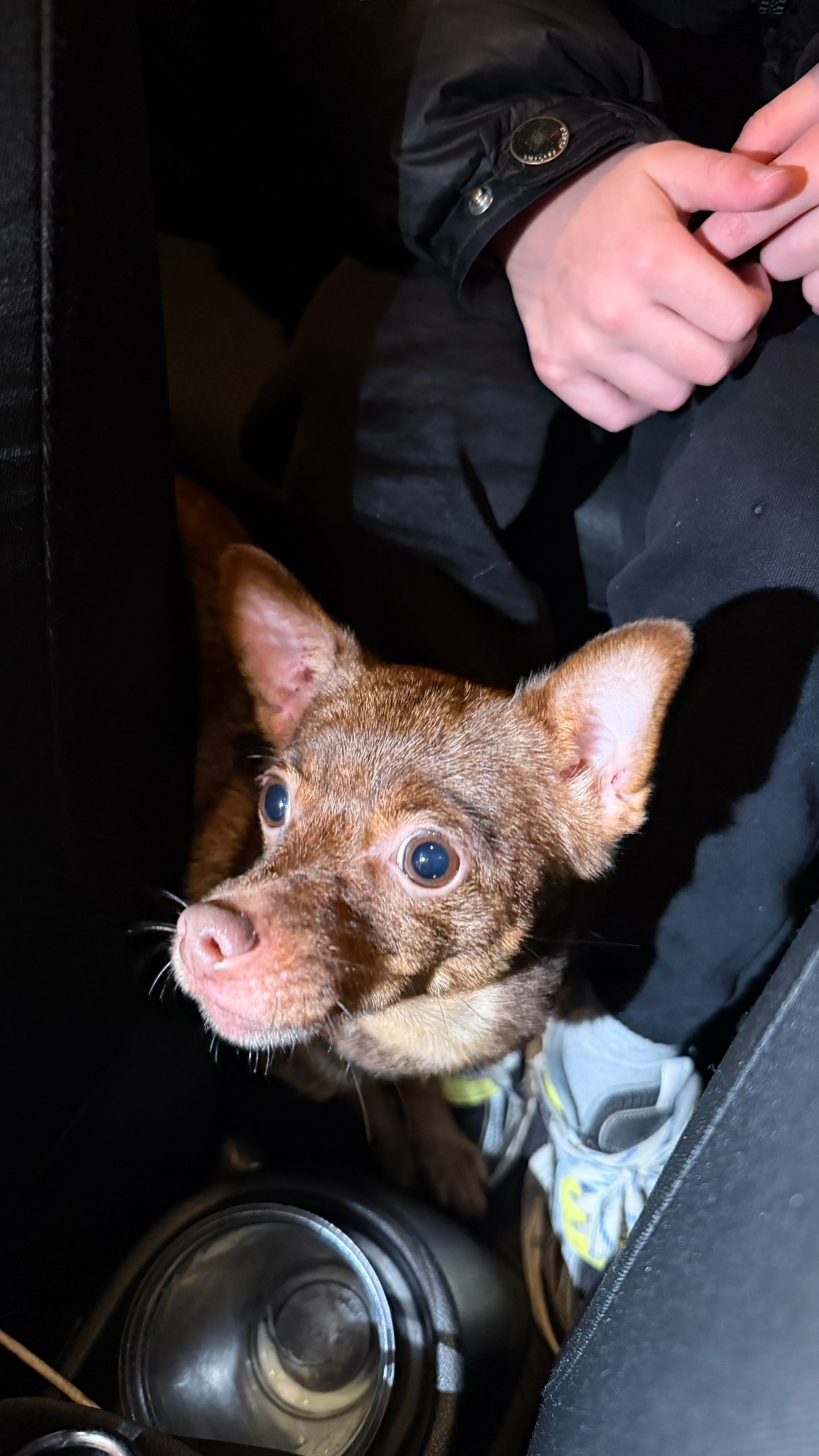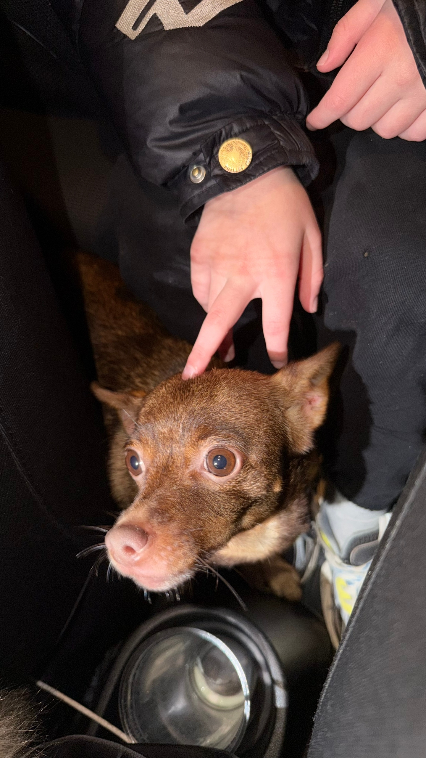 Нашлась собака (видно, что домашняя), ведет себя очень спокойно, дает себя взять на руки. 31 декабря в 22:00 запрыгнула в машину, испугалась петард. Хостинский район, улица Ялтинская, д. 20