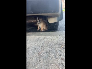 Нашли щенка, девочка, примерно 1,5 месяца. Пряталась под машиной,..