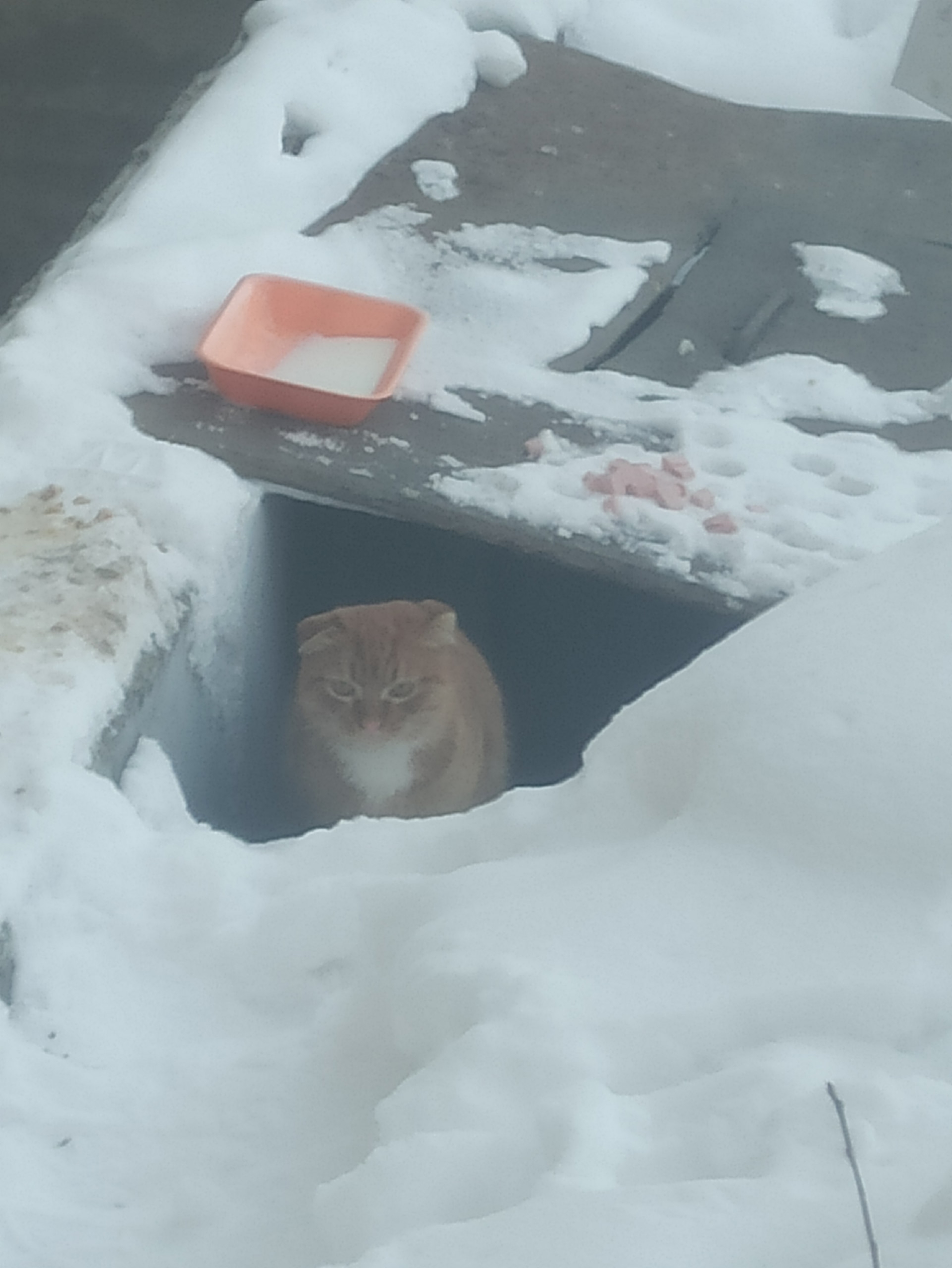 Несколько дней назад во дворе появился кот (кошка?). Видно, что был домашний, пришел в сильные холода. Хорошо, что нашел теплое укрытие. Видно, что был домашний. Плачет, но в руки идти побаивается. Ищем старых или новых хозяев. т. 89514439506