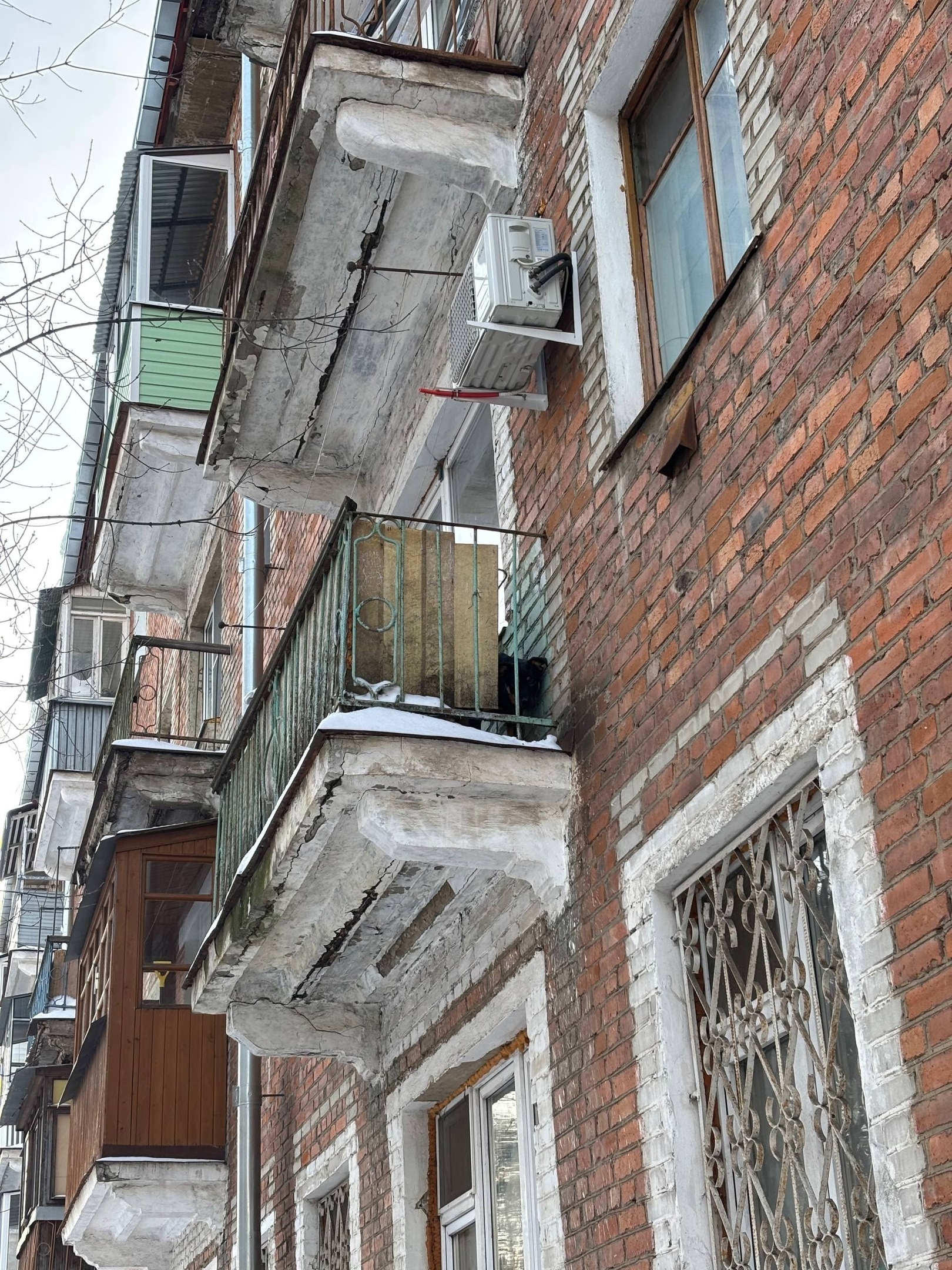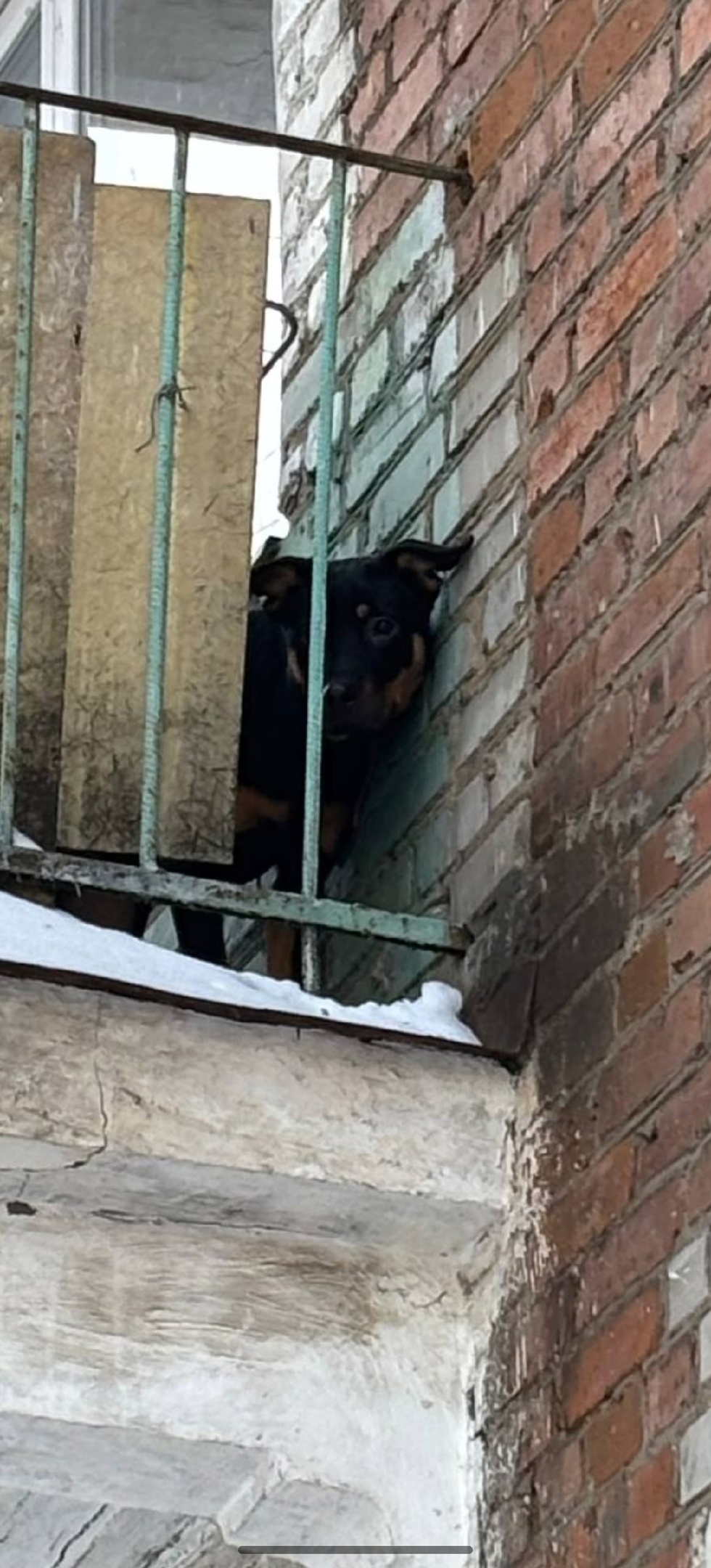 Ул. Пушкина д. 6 дети заметили собаку на балконе! Стоит трясется и скулит. Звонили в домофоны подъезда, те, кто ответил ничего не знают о собаке.