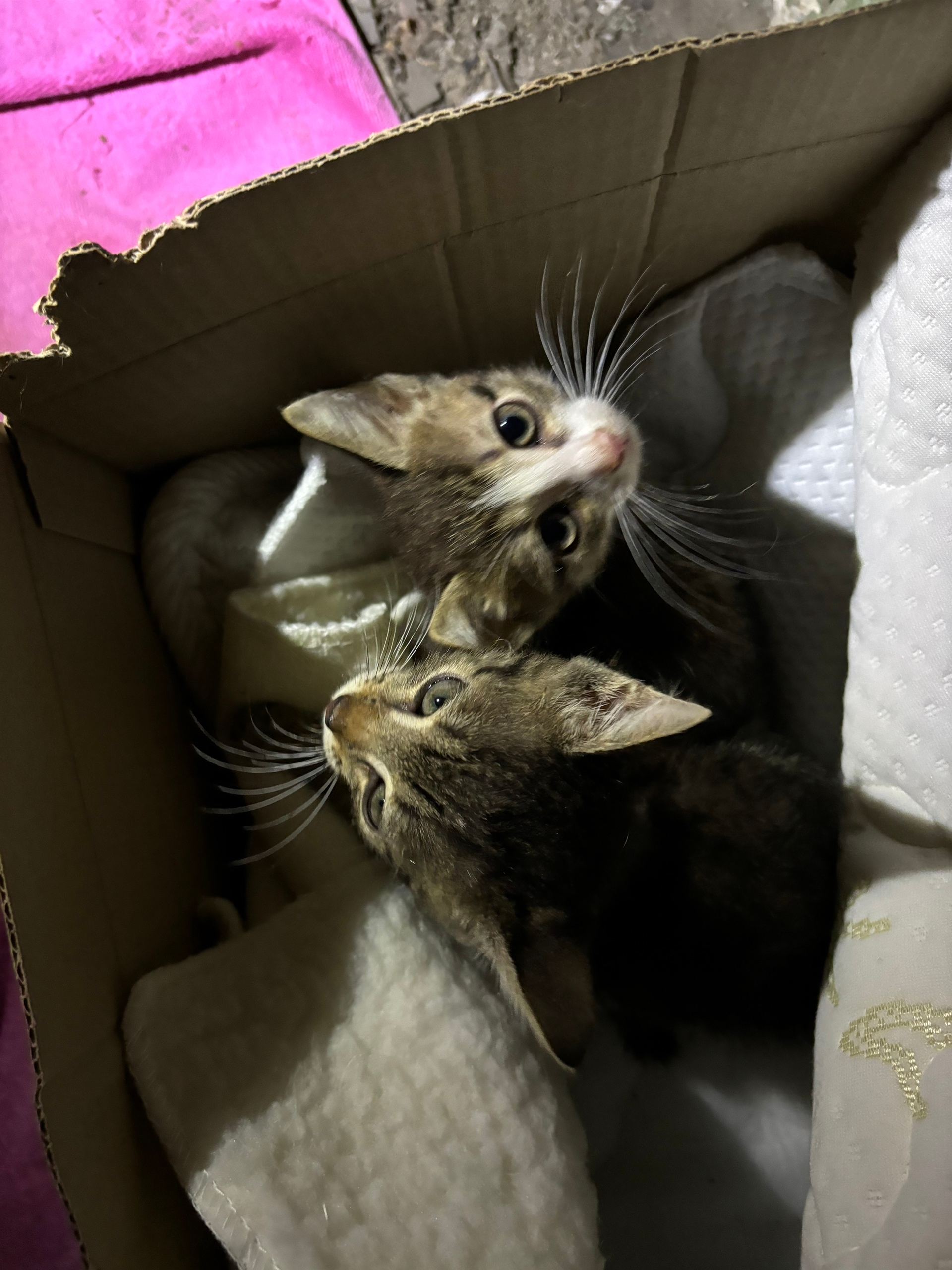 Ищем добрые руки, мам и пап для котят. 🙏🙏🙏Вроде оба мальчики. Видно, что домашние. Гладишь их, они не боятся.