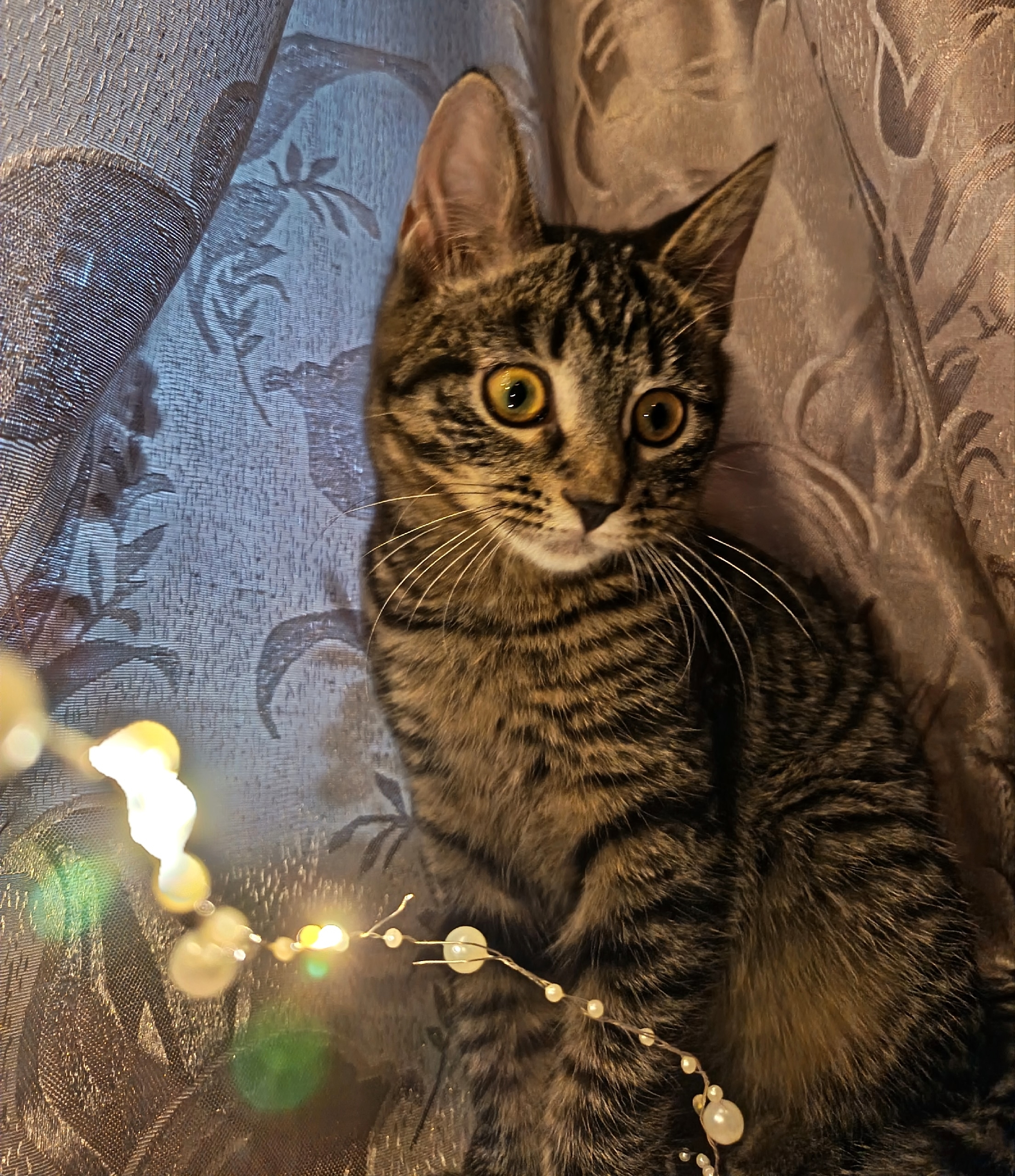 Настоящая нежная принцесса!Очень ласковая, умная и общительная. Обожает мурлыкать на коленях, ходит хвостиком и с интересом изучает все вокруг. В её солнечных глазах — целая вселенная доверия и надежды. Она станет самым преданным другом, который будет ждать вас с работы и беречь от грусти.