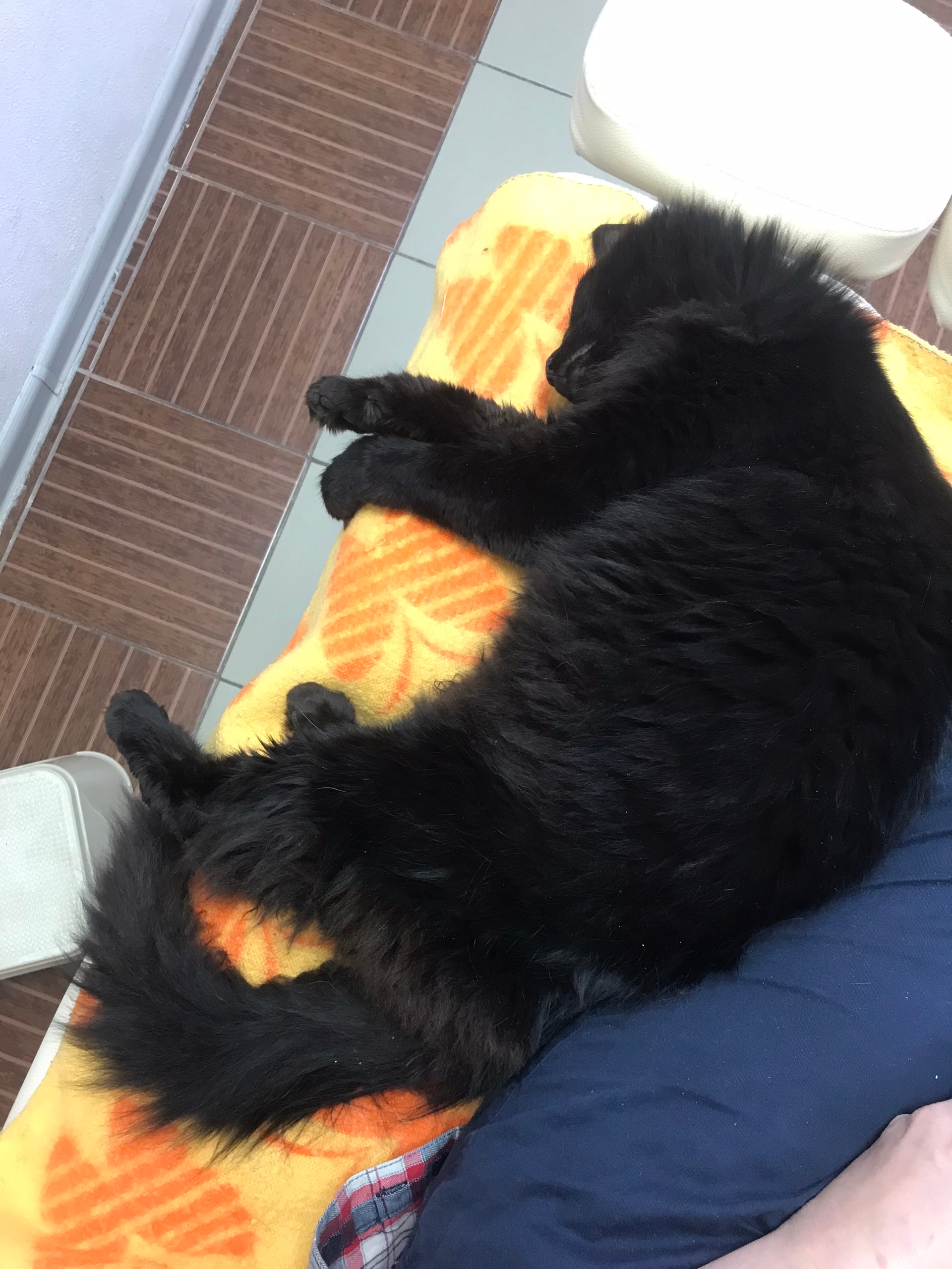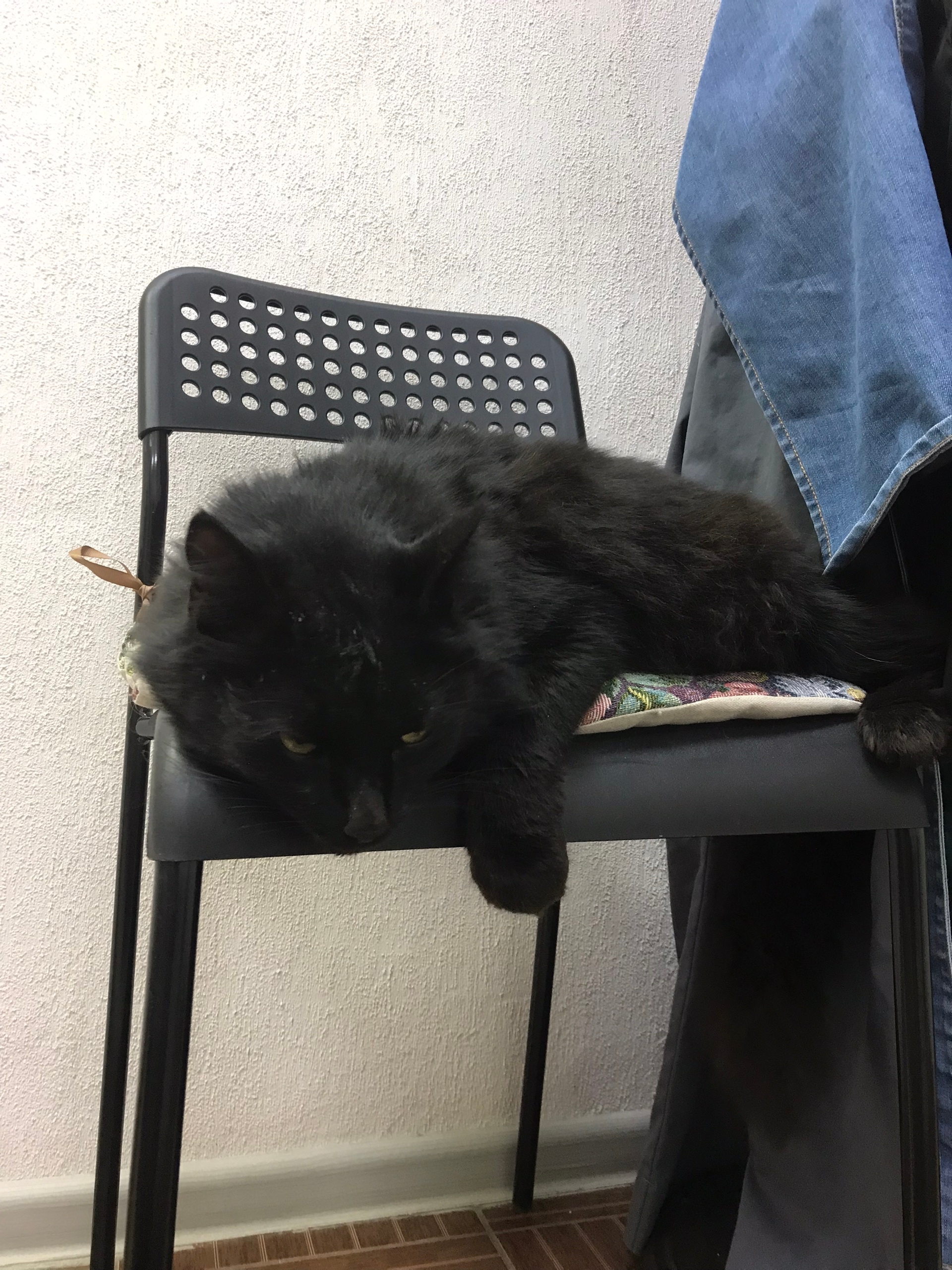 Новый Петергоф, Константиновская улица, приблудилась чёрная кошка, взрослая, ручная и контактная. Но длинная шерсть на шее и в паху сбита в колтуны. Кошка общительная, не боится людей. Не хочется думать, что это очередное выброшенное животное, которое жило у стариков и которое после их смерти никому стало не нужным. Пока что приютили кошечку, но остаётся надежда, что кто-то ищет свою дорогую пропажу. По всем вопросам писать мне в личку