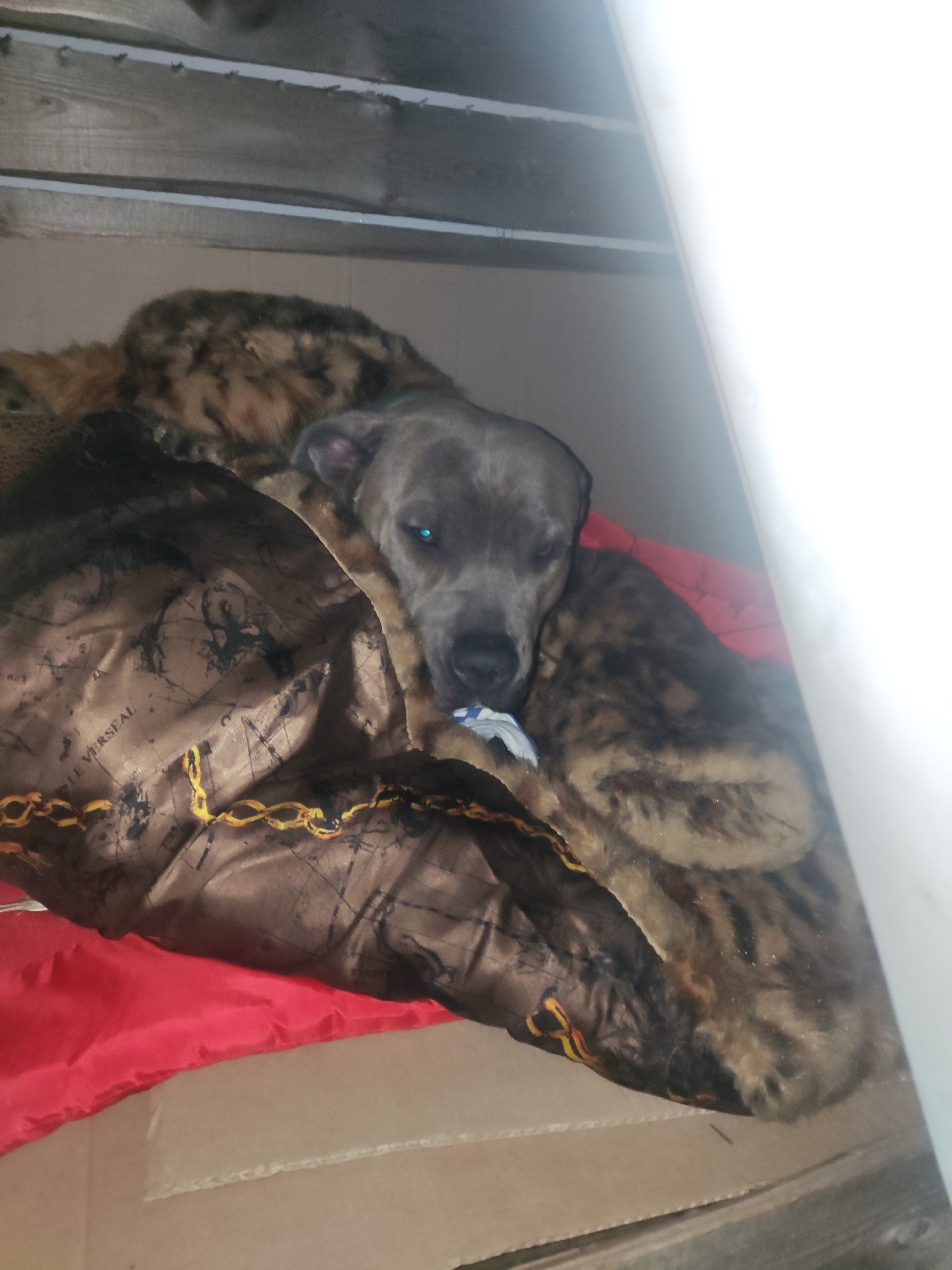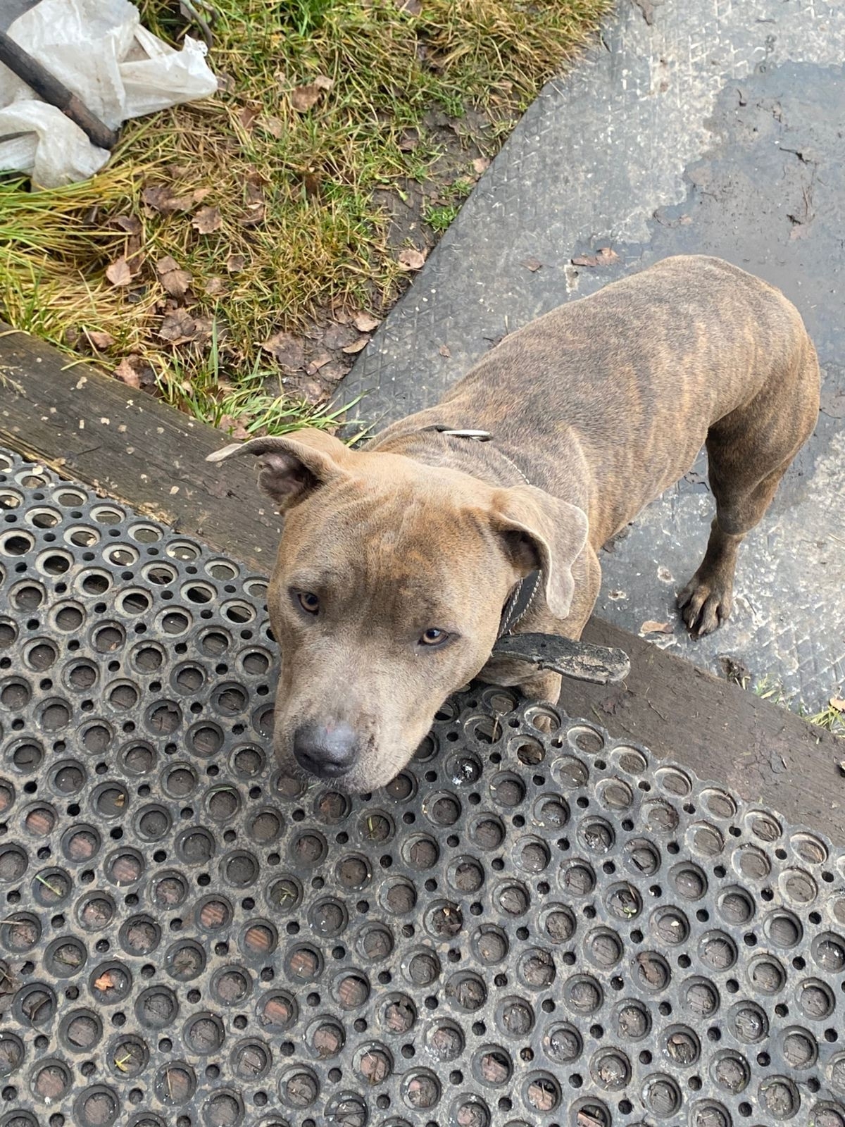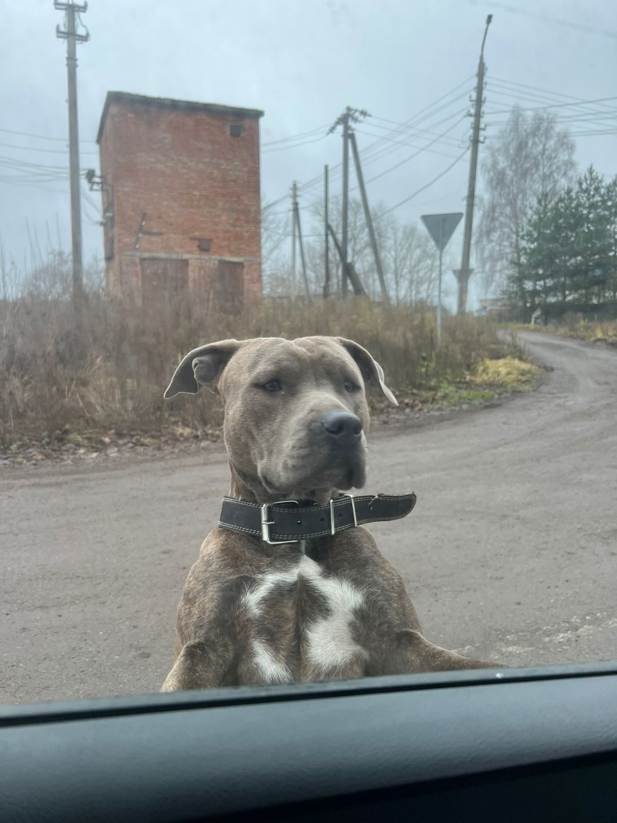 Нужна помощь!В общем так, хозяин написал что через два дня заберет. Собака все еще тут, он не отвечает. Домой пустить возможности нет, на улице ей холодно. Амстафф, небольшая девочка Ася.С собаками ладит нормально, с детьми тоже, к людям тянется. Добрая. Только с кошками категорически никак.к поводку относится спокойно. Может у кто то хочет ее забрать себе или на передержку.хозяин из болохово, вроде.Непонятным образом она появилась в другой деревне.