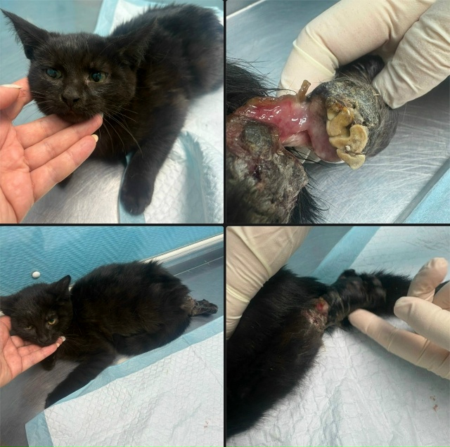 Увидели котенка, лапка уже была с некрозом и болталась на одном сухожилии, он хромал, жалобно пищал и был истощен. Видео с ним размещалась во всех группах, неравнодушные пошли на поиски. Только спустя двое суток после многих рейдов нашли на улице, сразу повезли в клинику. От лапы уже был гниющий запах 😰