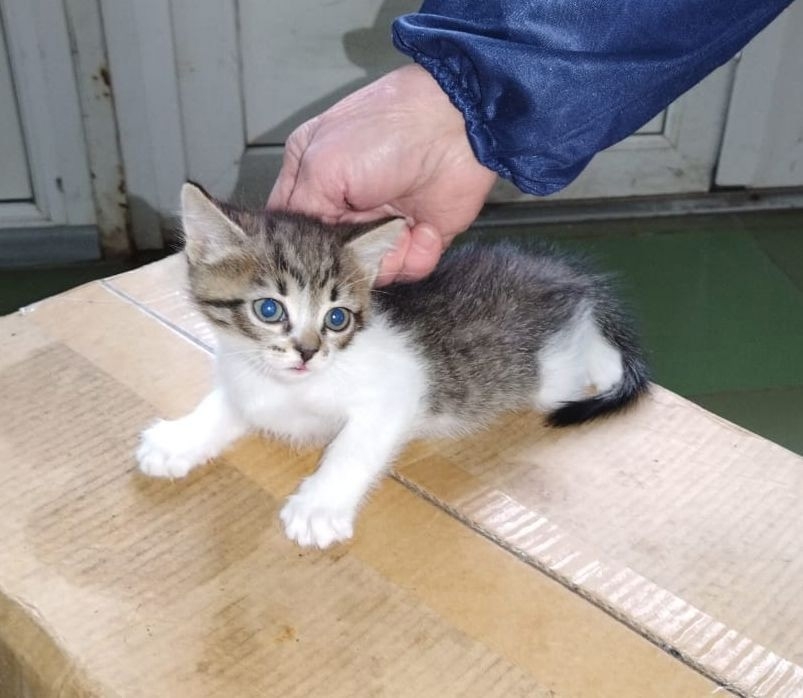 Подкинули двух котят в магазин. В коробке сидят, но в любой момент могут вылезти и тогда за ними не усмотришь. Люди могут не заметить, наступить или дверью прищемят.