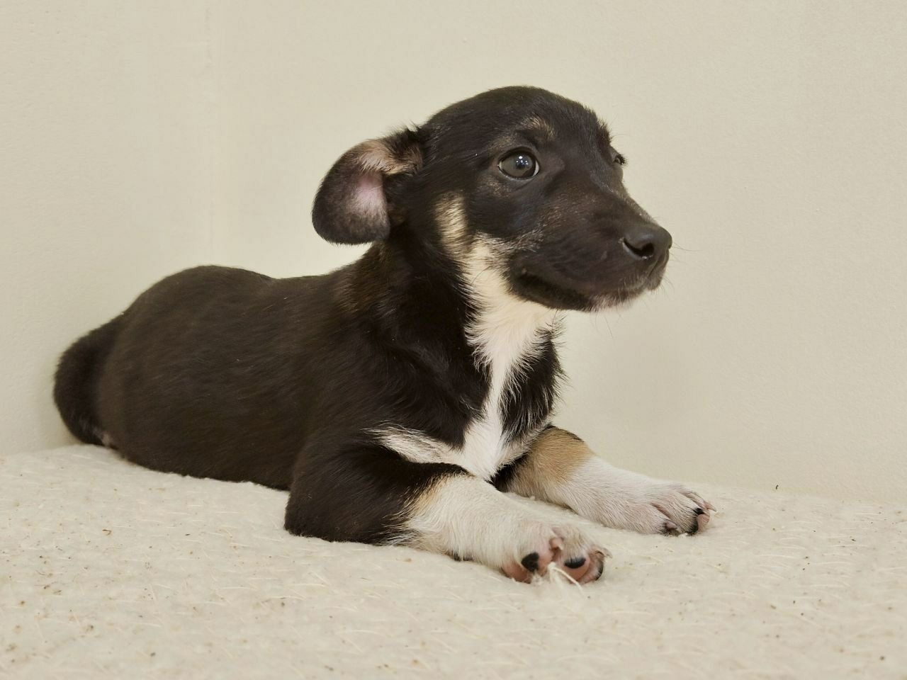 Щенка нашли в подъезде, запуганную, маленькую девочку, которой 2 месяца.