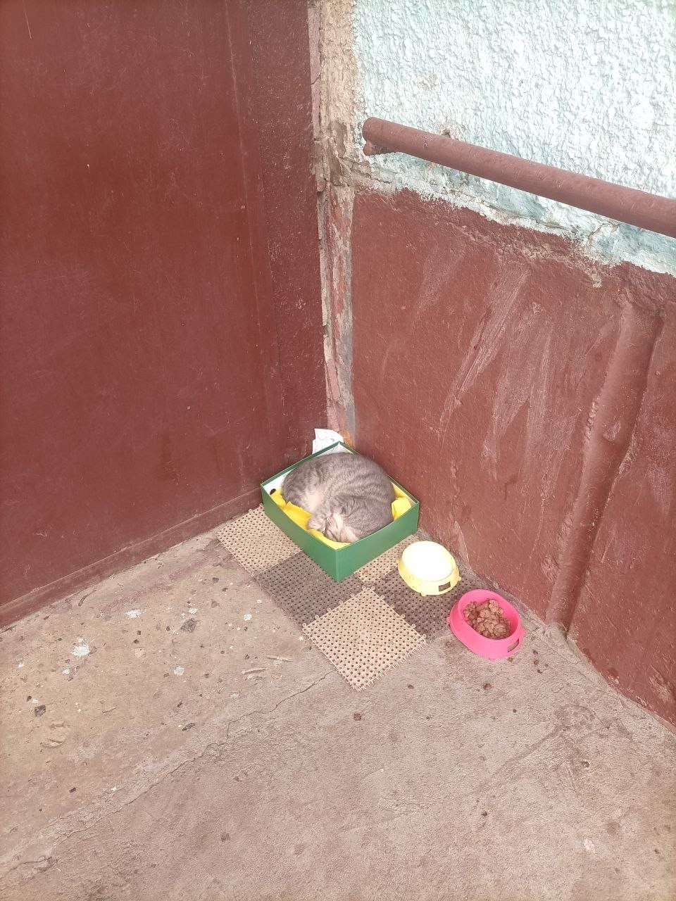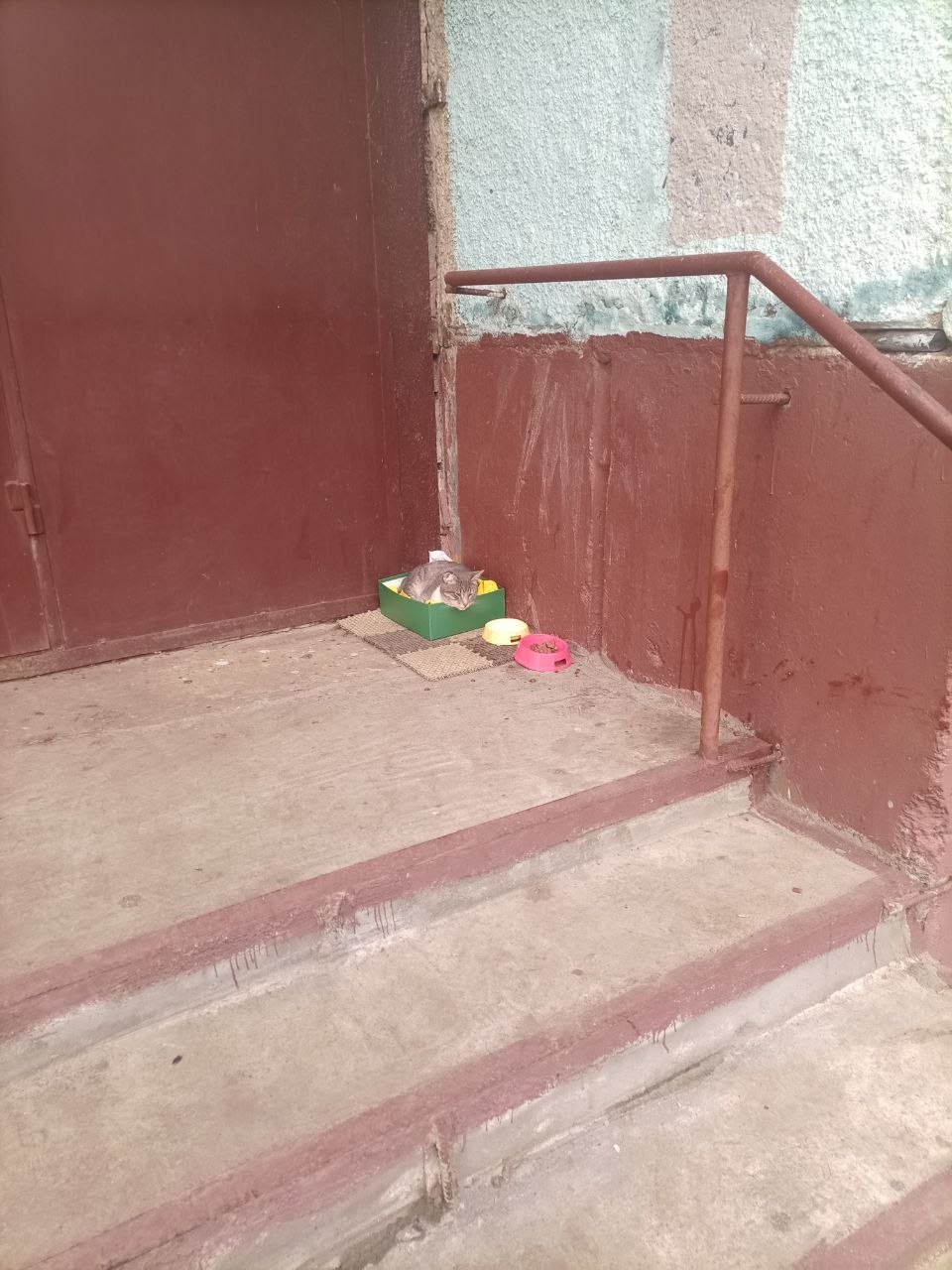 Очередной брошенный котик в брагинском районе, бабульки сказали с лета тут, чистый, спит в коробке, явно бывшедомашний, не исключено, что и выкинули из этого подъезда, т.к. никуда не уходит, боится, вдруг кто-то сможет подарить ему тёплый дом и заботу, скоро морозы и он не выживет😢😥😥писать в лс, контакты дам женщины