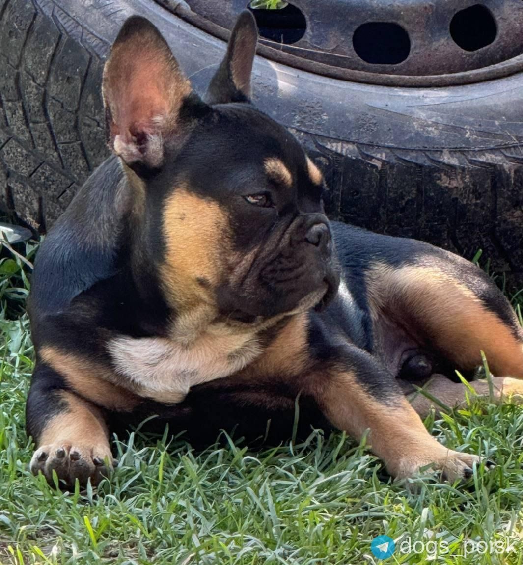 У бабушки сейчас убежал наш любимый Ральф. Она в данный момент его там ищет. Собака очень ласковая, контактная, безобидная. Французский бульдог.