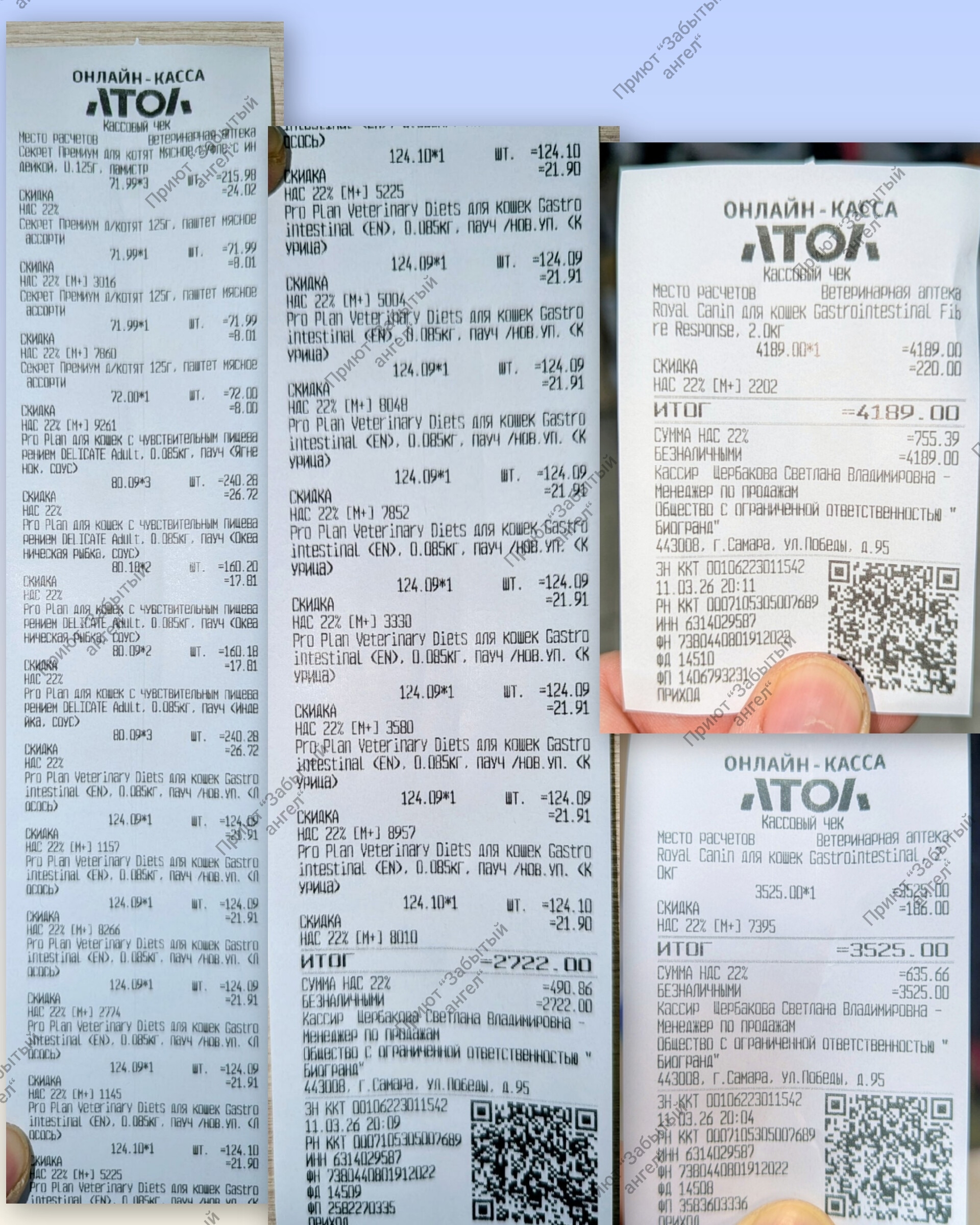Прилагаю в посте чеки за сегодняшнюю закупку лечебных кормов. Также прилагаю видео из архива приюта в память о коте Семене…