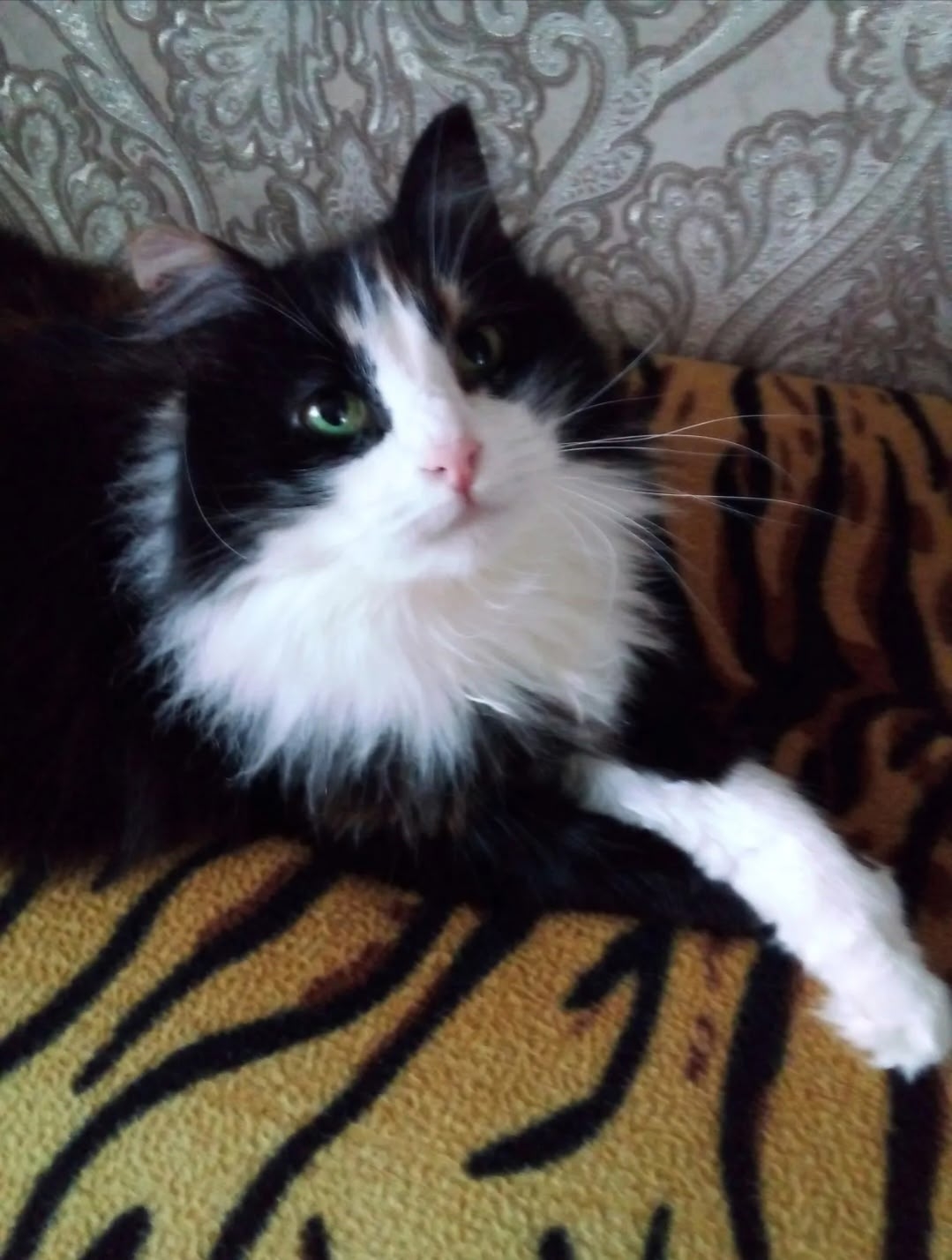 Добрая, ласковая, спокойная кошка.