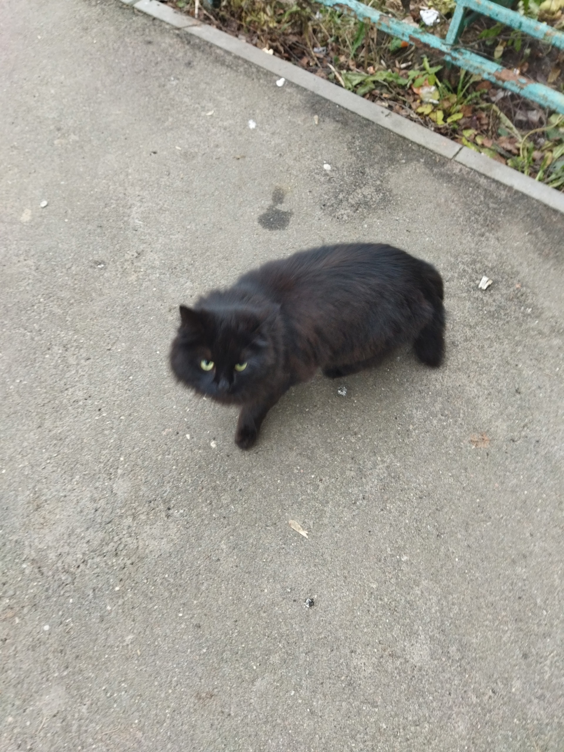 Чёрная кошечка с жёлтыми глазами появилась сегодня на улице Пушкина. Бегает за всеми, ищет кого то и плачет. Город Орехово Зуево, тел. 89296678795