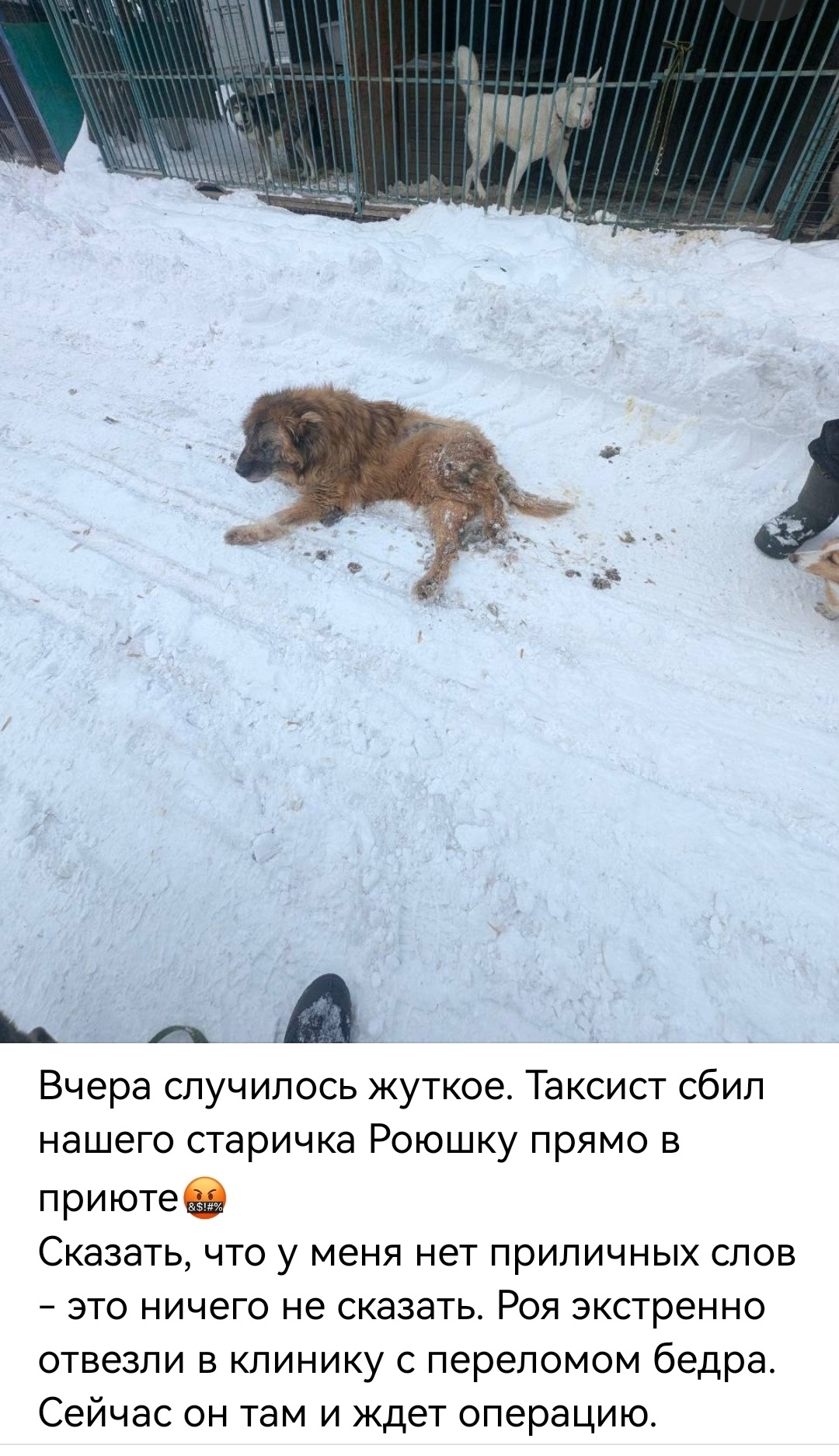 Это приезжий таксист сбил собаку на территории приюта для собак в Московской области и скрылся. Такие неадекваты перевозят людей, сбивают собак. Будьте осторожны!