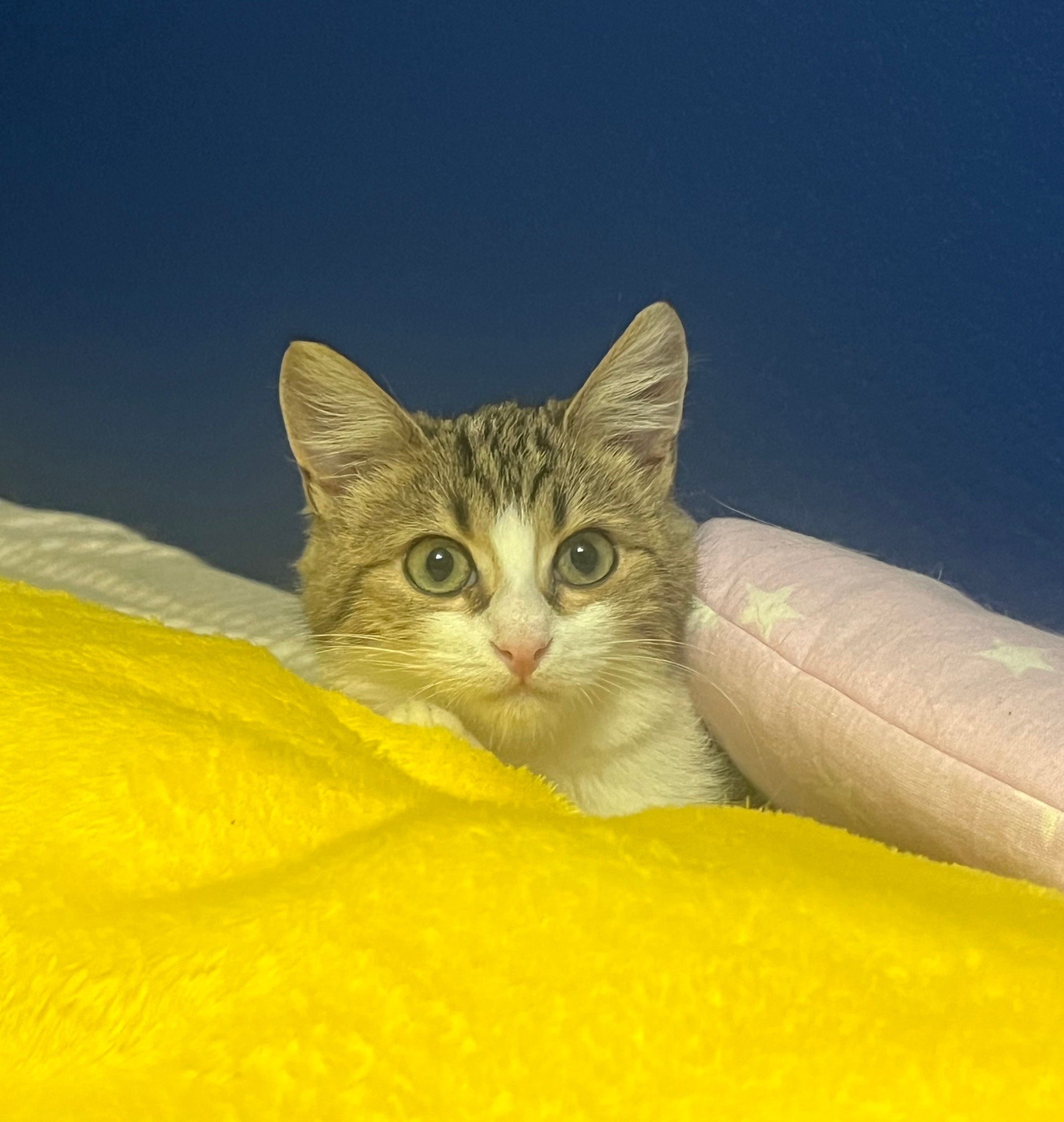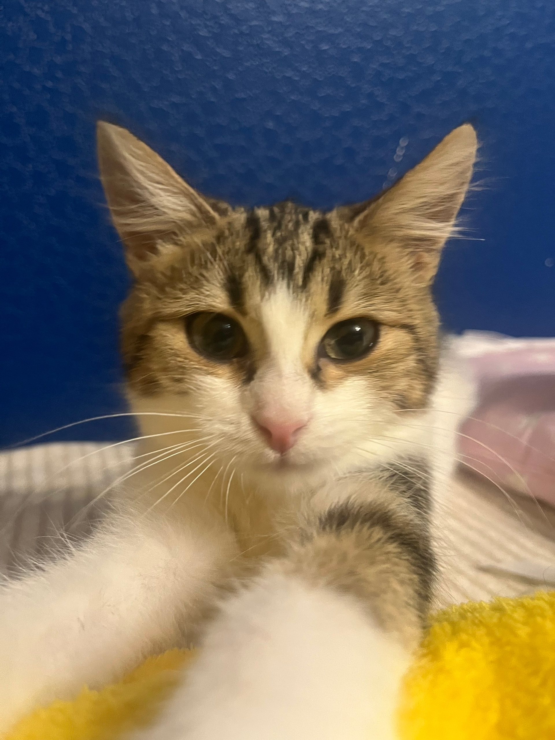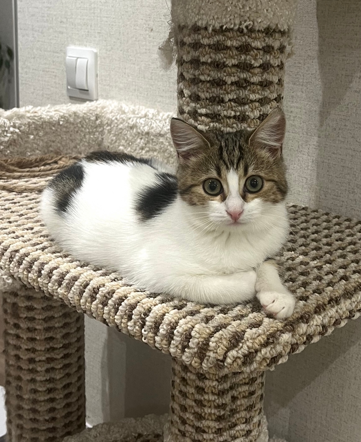 Отдам котенка. 2,5-3 месяца в добрые руки,, спасена с улицы,..