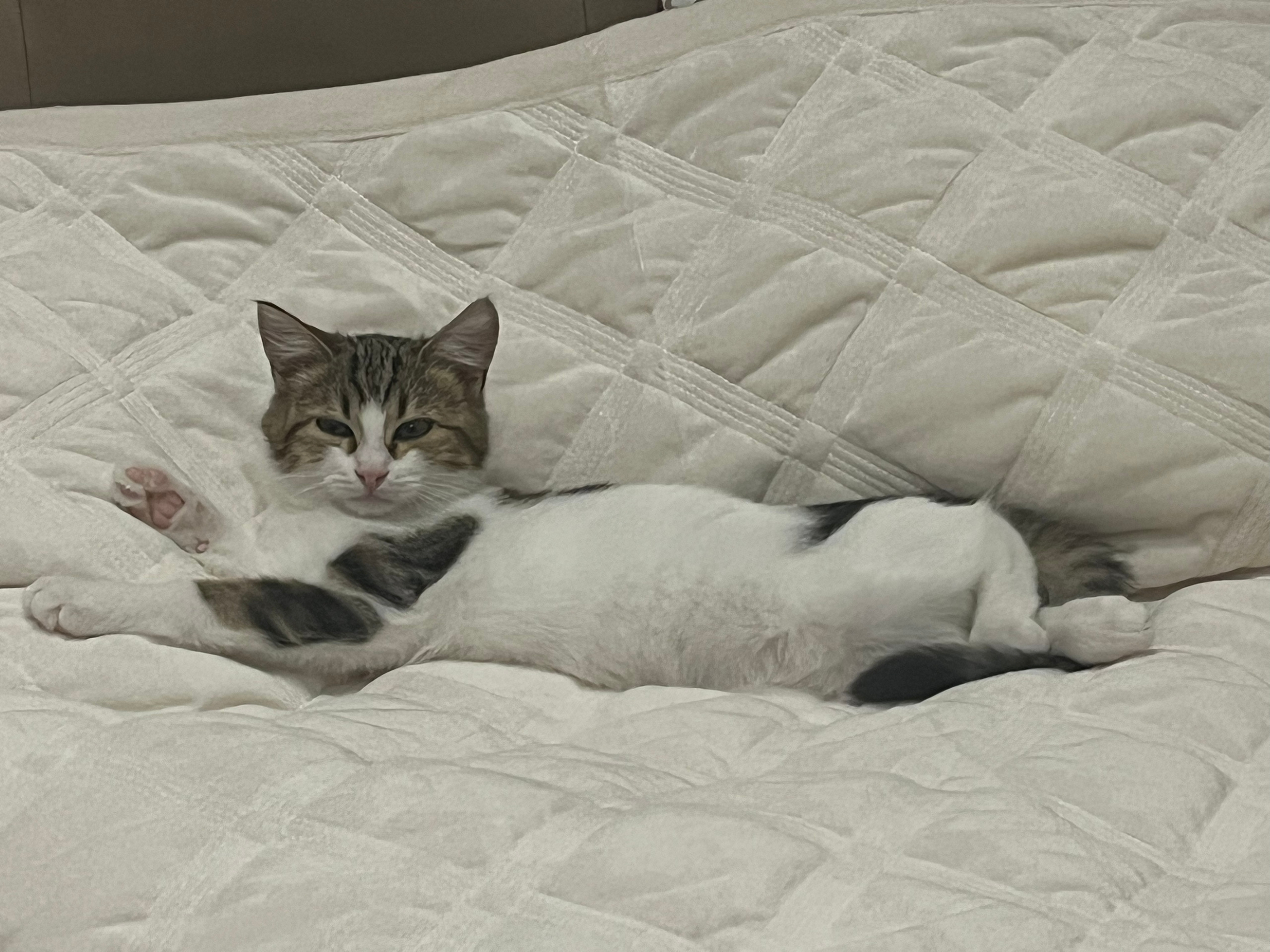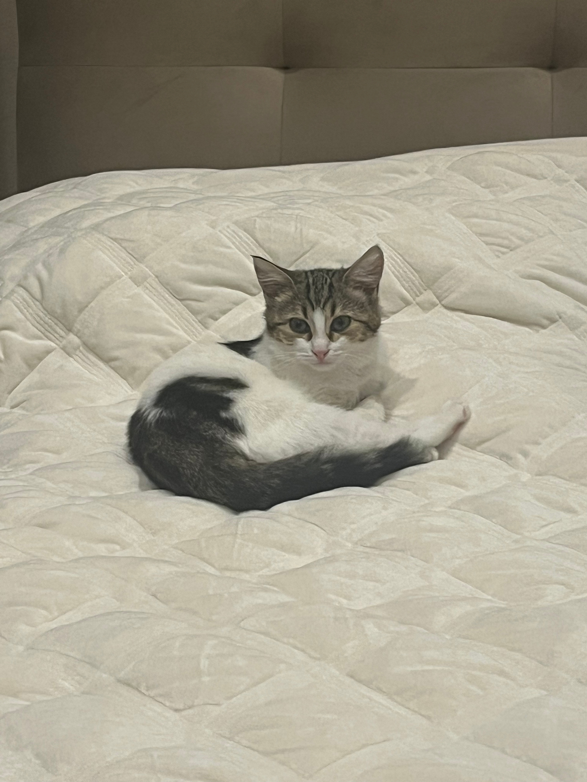 Отдам котенка. 2,5-3 месяца в добрые руки,, спасена с улицы, обработана от паразитов,, малышка ходит в лоток на 5+,, уже оттаяла и готова доверять людям, которые ее будут баловать и любить,, любит лежать на окошке и диванчике,, играть с игрушечными мышками и бегать по квартире,, любопытная девочка,, еще немного пугается,, но уже почти освоилась, мурлыкает как трактор,, ест сухой и влажный корм,, любит когда гладят,, пристраивается взрослым людям у которых был опыт с кошками , без маленьких детей, своя квартира ,, и готовым нести ответственность за которебенка,,