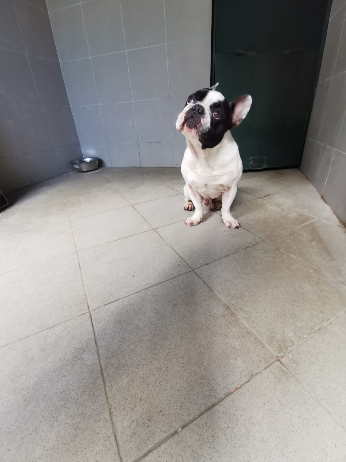 Отдают французского бульдога, 8 лет, кастрирован, жил у бабушки и дедушки, остался один.