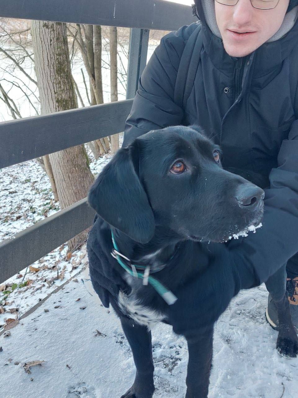 13.12.2025 около 14.00 в лесу около Поречья, недалеко от станции Тучково,  прибилась собака, кобель, породы типа дратхаар (немного меньше). Окрас черный, с зеленым ошейником. Срочно ищем хозяев