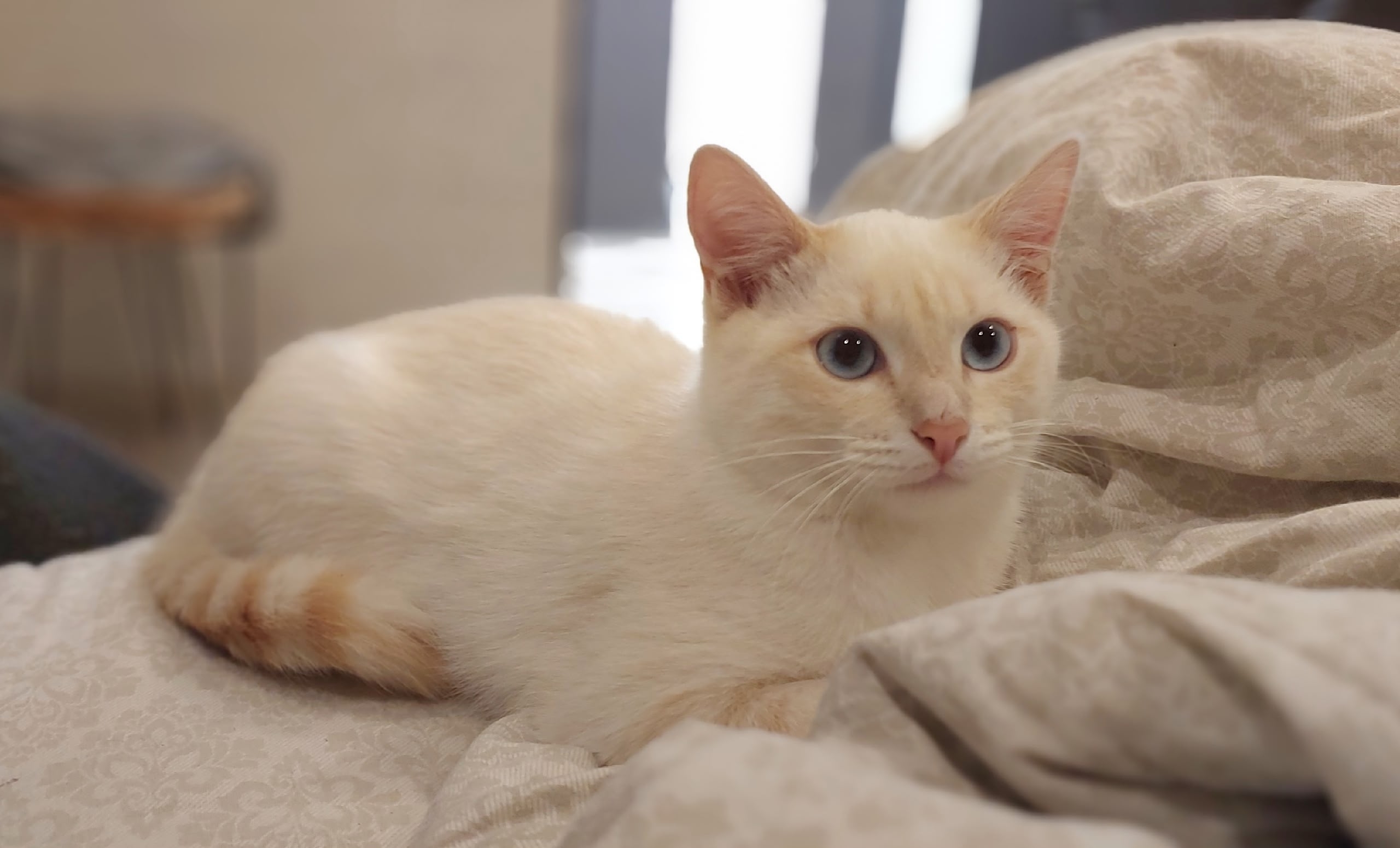 Голубоглазому малышу Беляшу очень нужен дом! Ему 5 месяцев, кастрирован, к лотку приучен. Очень ласковый и общительный мальчишка необычного окраса, любит сидеть на ручках, мурчать, активный и игривый которебенок.