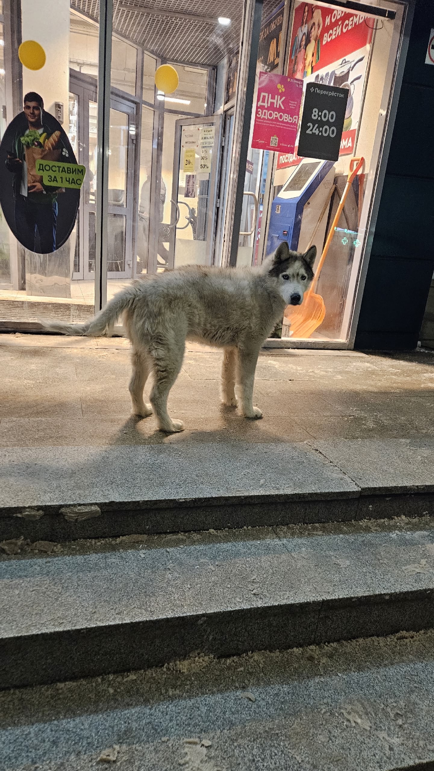 Перекрёсток на боголюбова. Бродит еле живой хаски. На лапу едва наступает, на шее след от ошейника и плеш. Не ест…