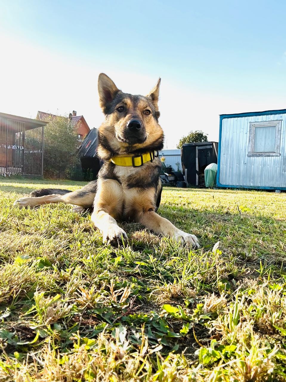 Она не большая и лёгкая, ещё не привыкла к поводку, но идеально подойдёт для дома с участком, где можно резво бегать и играть. Хорошо контактирует с с детьми, не обижает и не гоняет кошек, с собаками дружна и готова подстроится под них (не доминант).