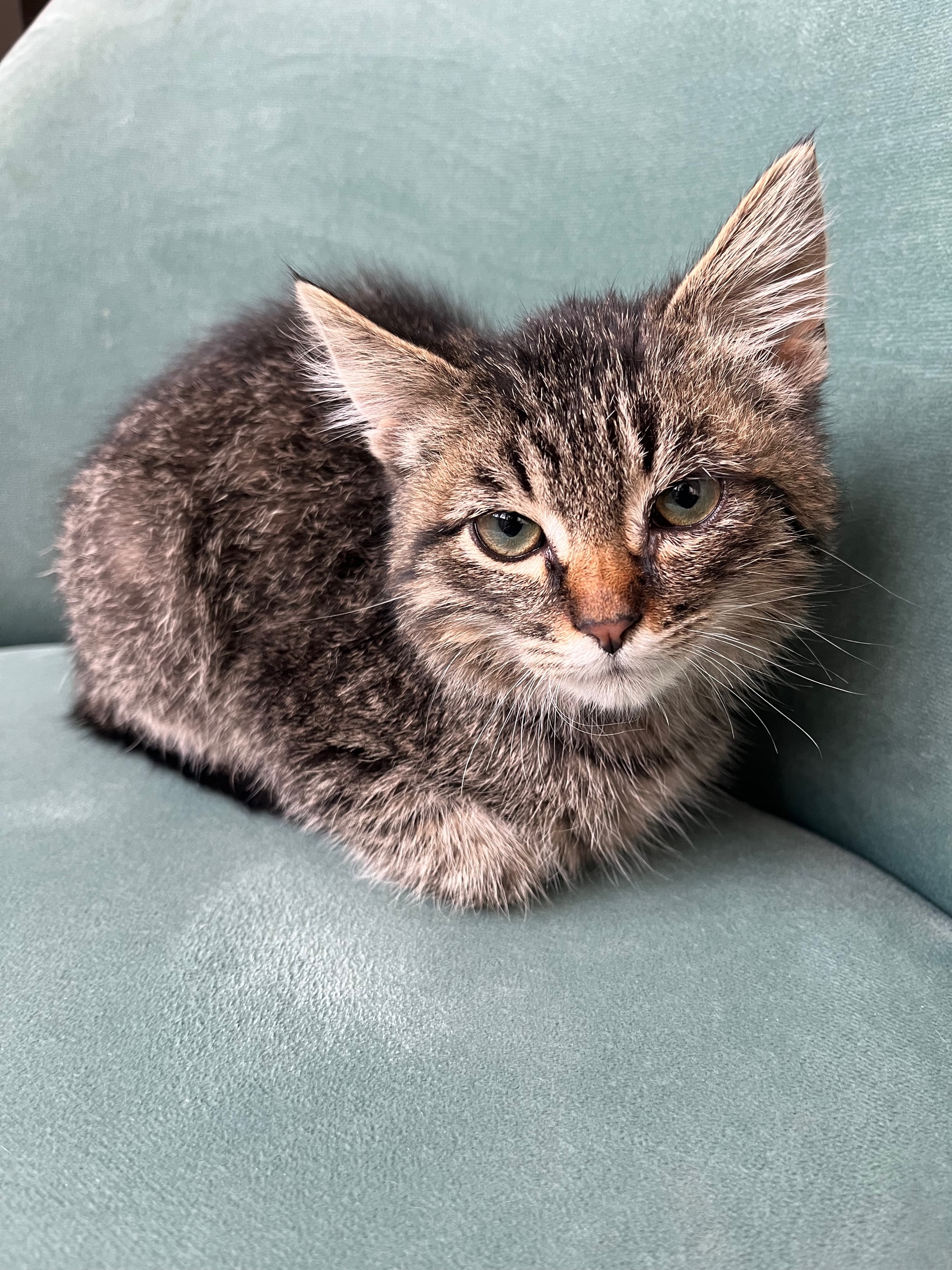 Подбросили в подъезд пару дней назад. Оставить себе не могу, поэтому ищу любящих хозяев. Очень ласковая, игривая и контактная девочка, постоянно хочет прижиматься и обниматься, от меня, пока я дома не отходит. Лоток нашла сразу, кушает и влажный и сухой корм. Территориально Алимпик.