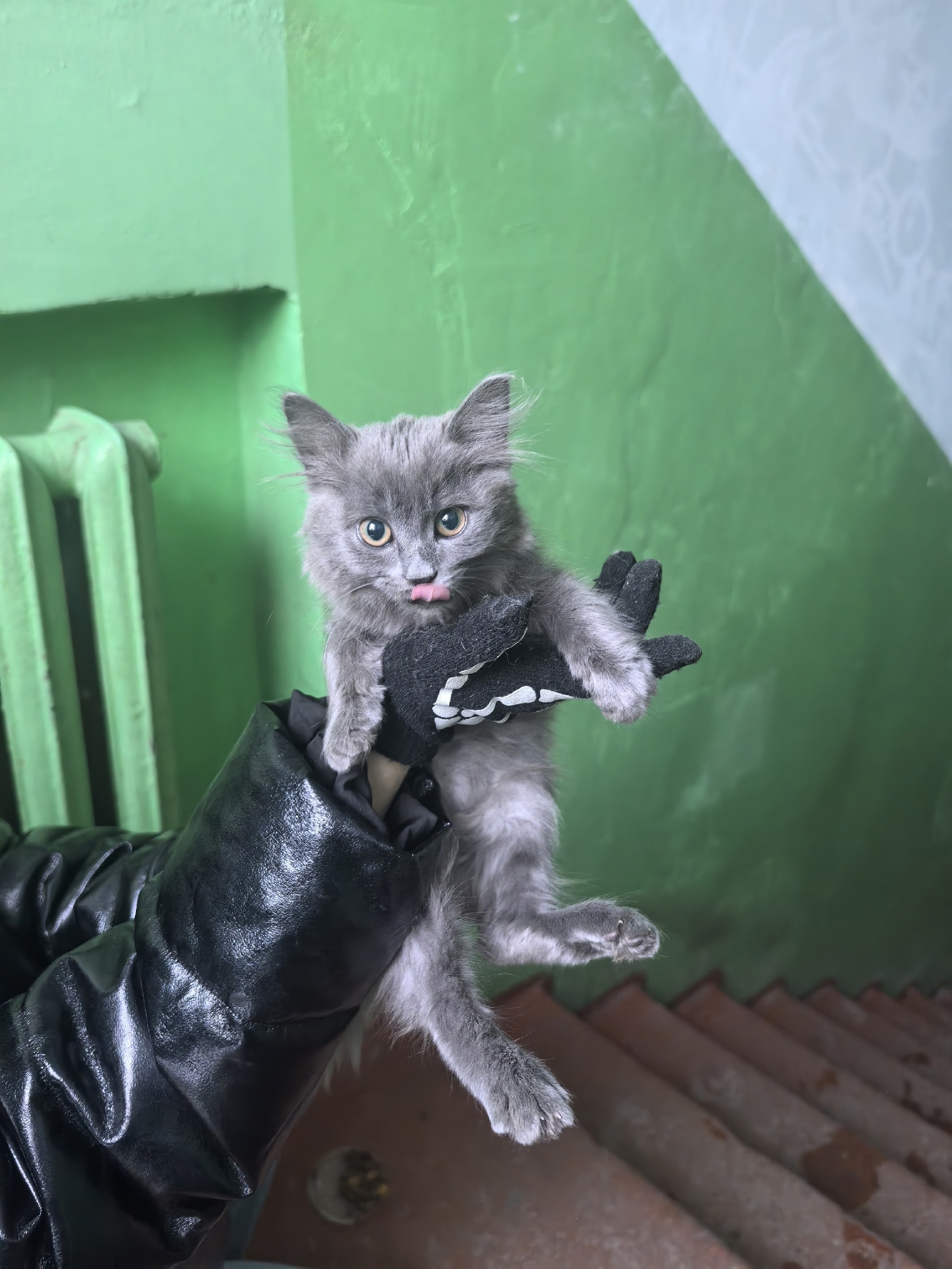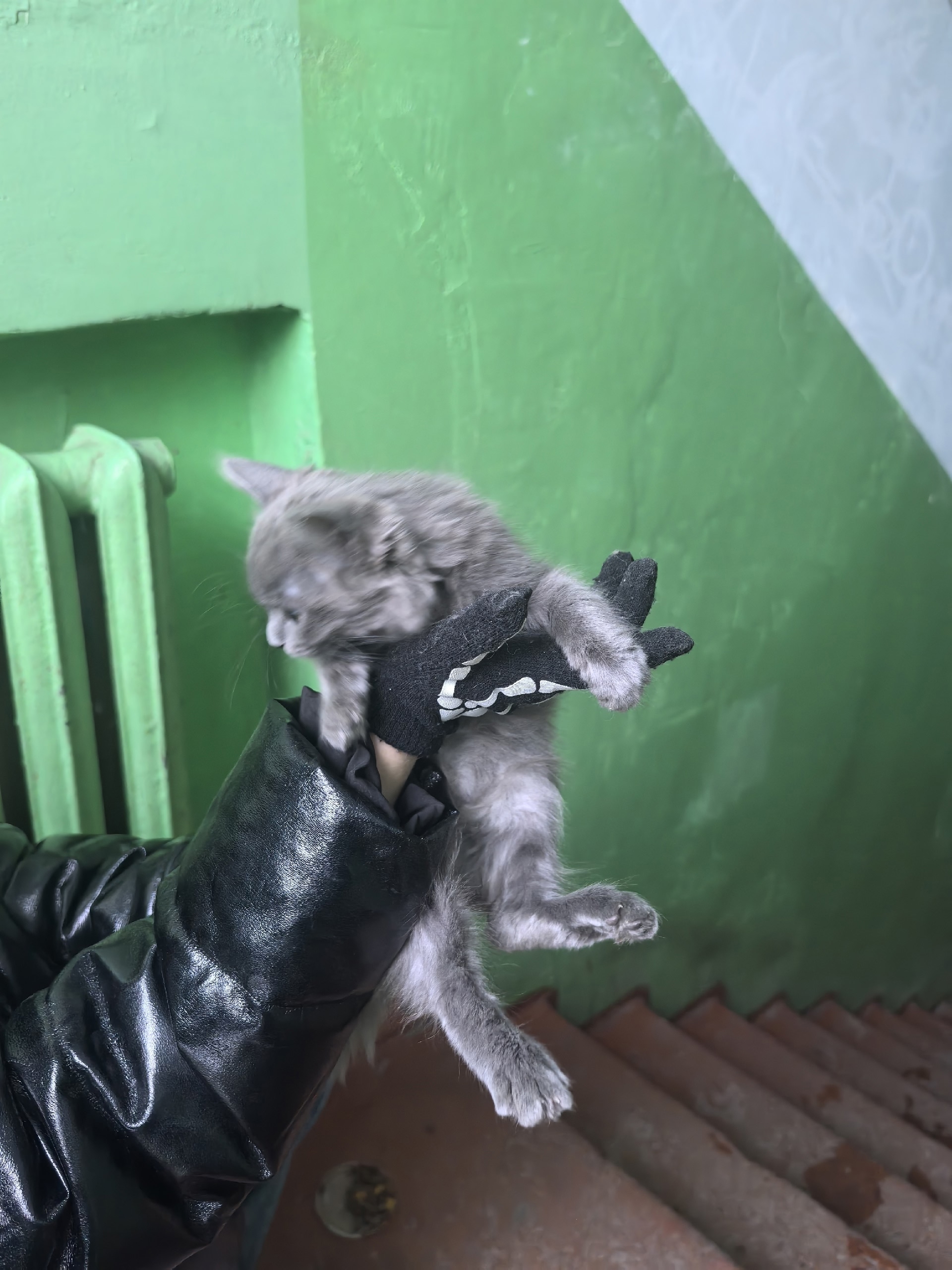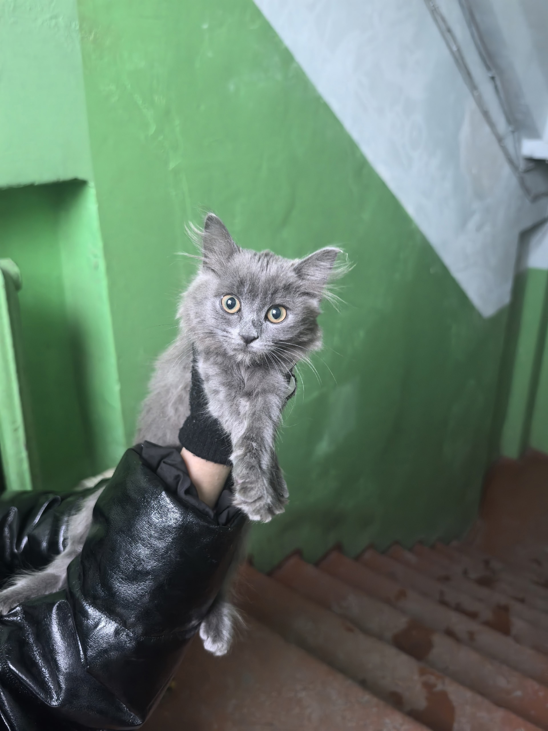 Подкинули в подъезд котенка, на вид два месяца. Может кому-нибудь..