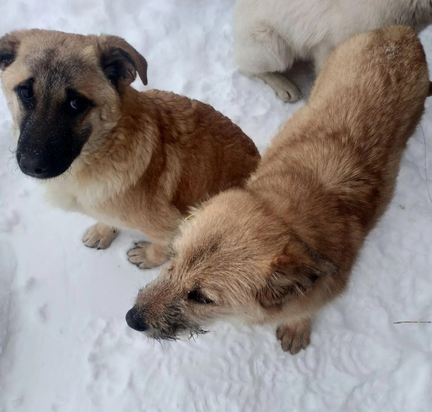 Двое щенков в поисках дома, остались девочка и мальчик.