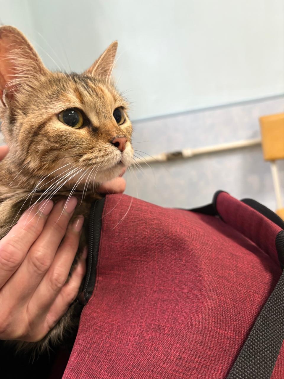 К нам в студию прибилась маленькая кошечка – ласковая, доверчивая, похожа на бенгальскую. Сейчас она живёт на улице, но с наступлением холодов и в её положении это смертельно опасно