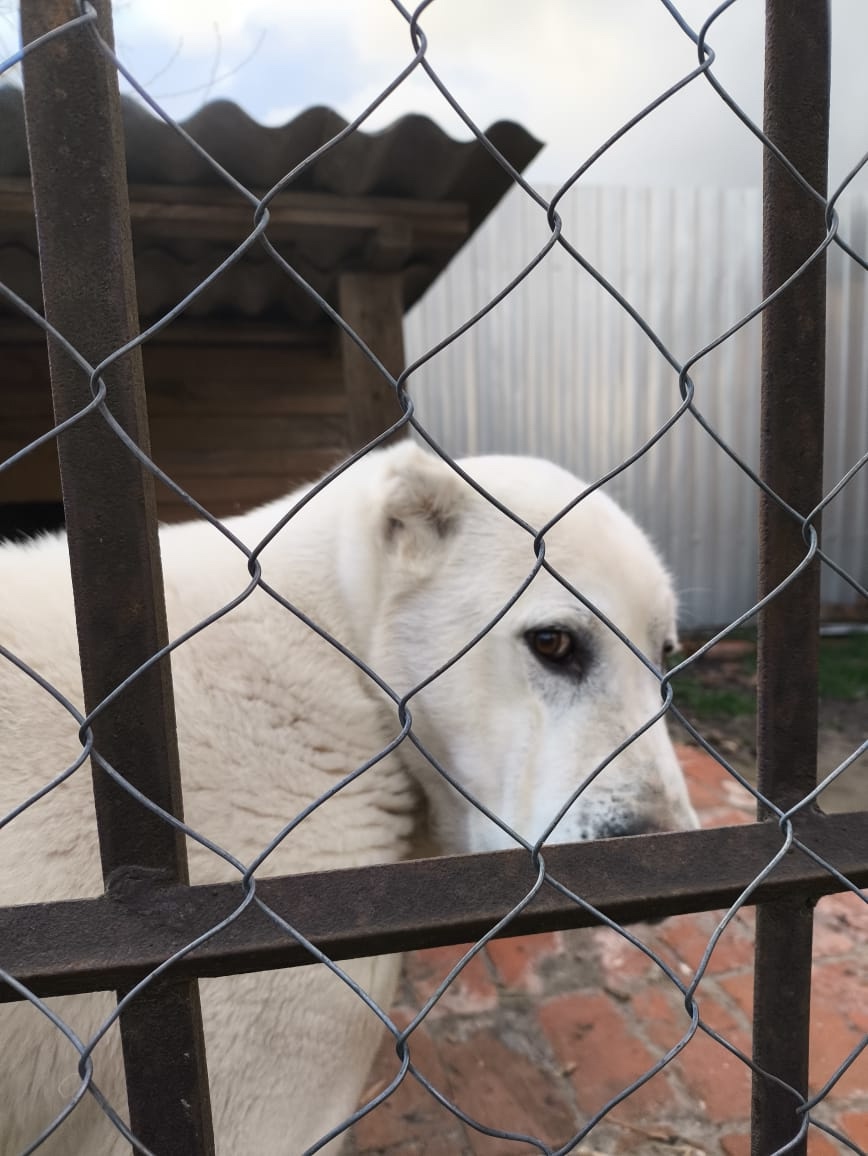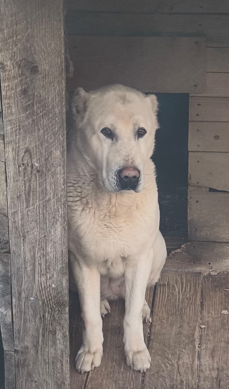 Отдаю девочку Алабай в добрые руки, возраст 7 лет. Добрая хорошо ладит с другими животными и детьми. Читайте внимательно, Вольерного содержания!(на цепи сидеть не будет).