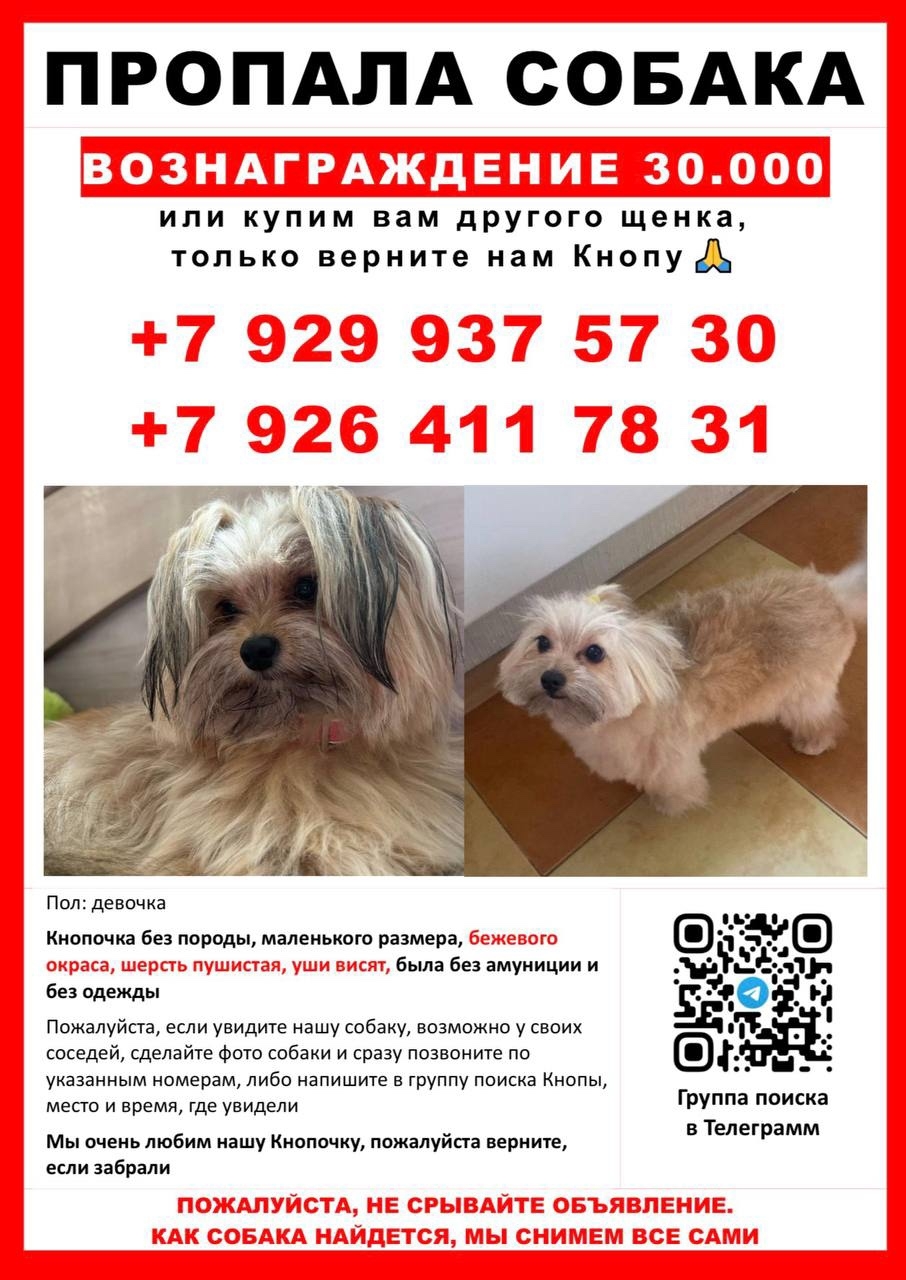 ПОИСК КНОПОЧКИ 🙏🏽 Потерялась 09.12.2025г. Московская область, г…
