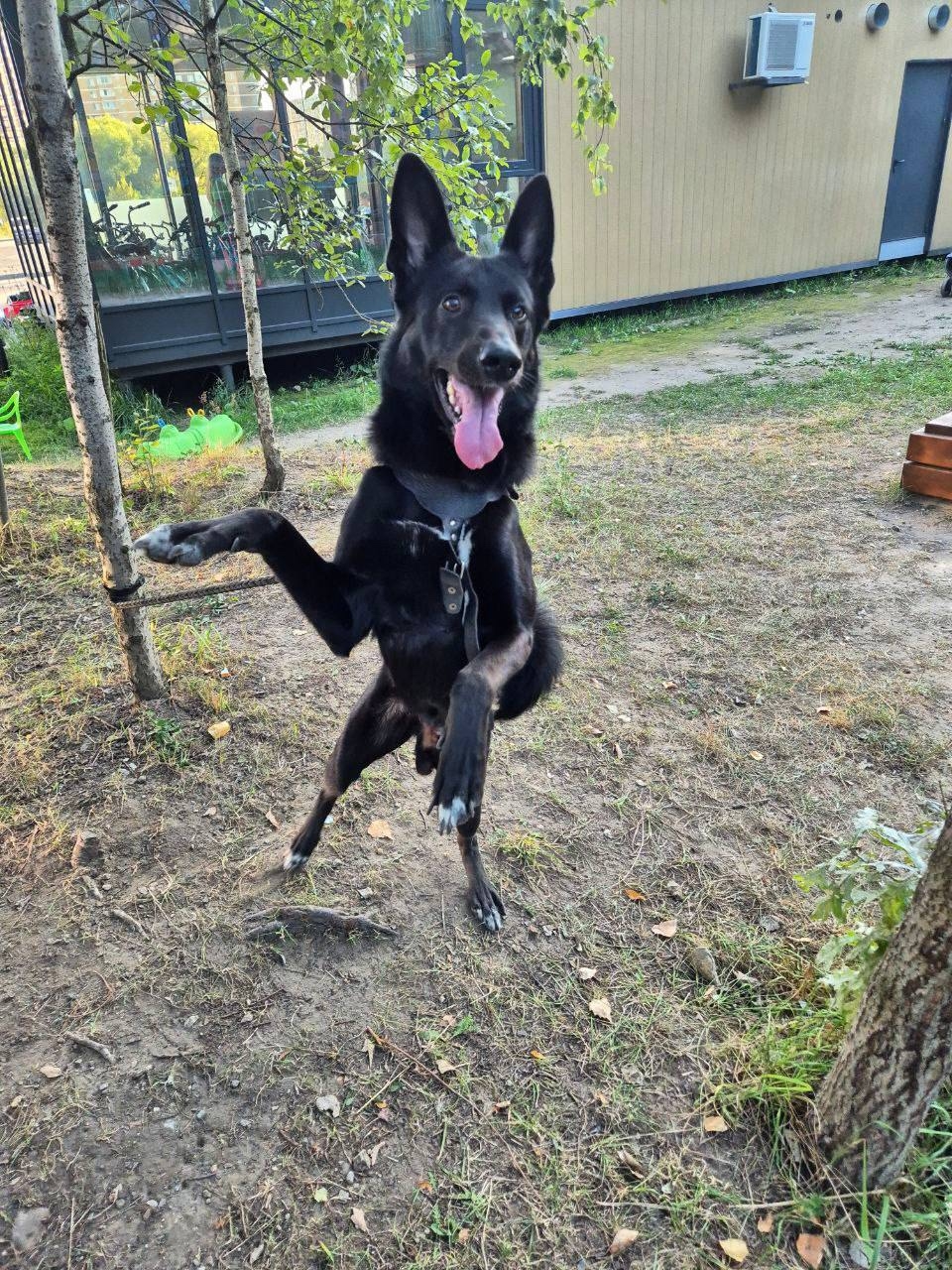Степа бельгийская овчарка, черного цвета с белой полоской на груди