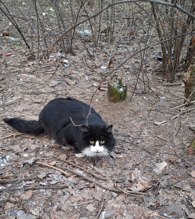 Живет на улице. Местные кошки его в подвал не пускают…Непонятно, где и прячется в такой холод😱