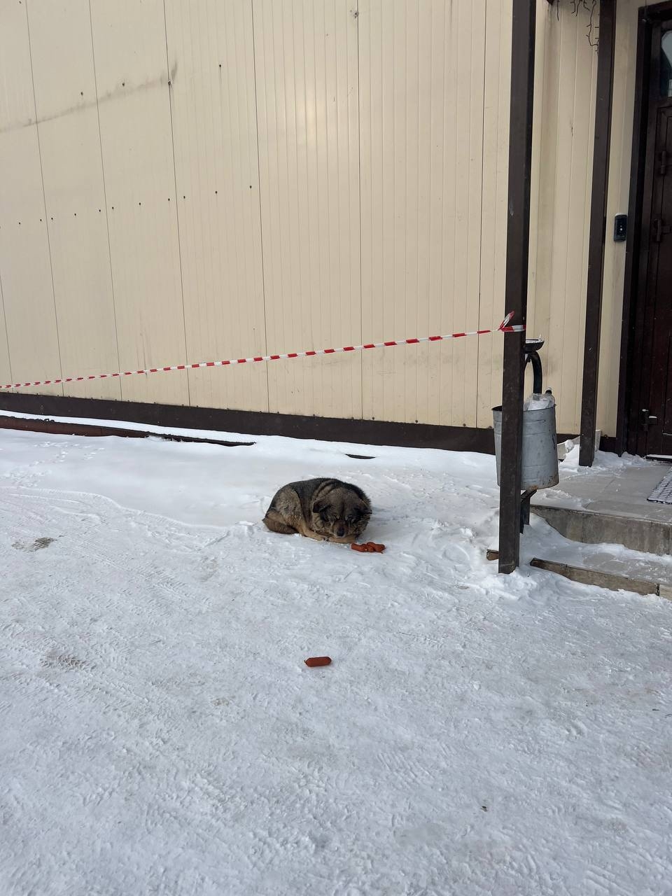 Собака прям мерзнет лежит на Кубинке Можайское тц