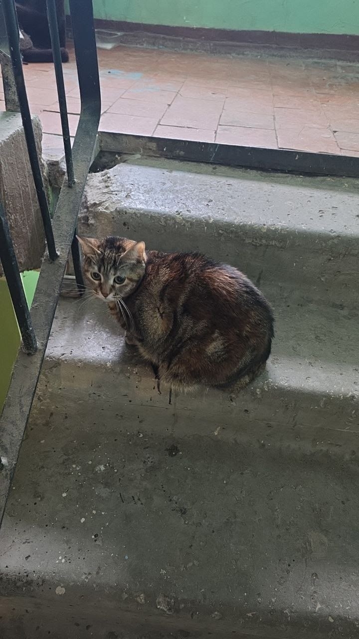 Срочно, нужна помощь кошечке!Её подбросили в переноске к подъезду!