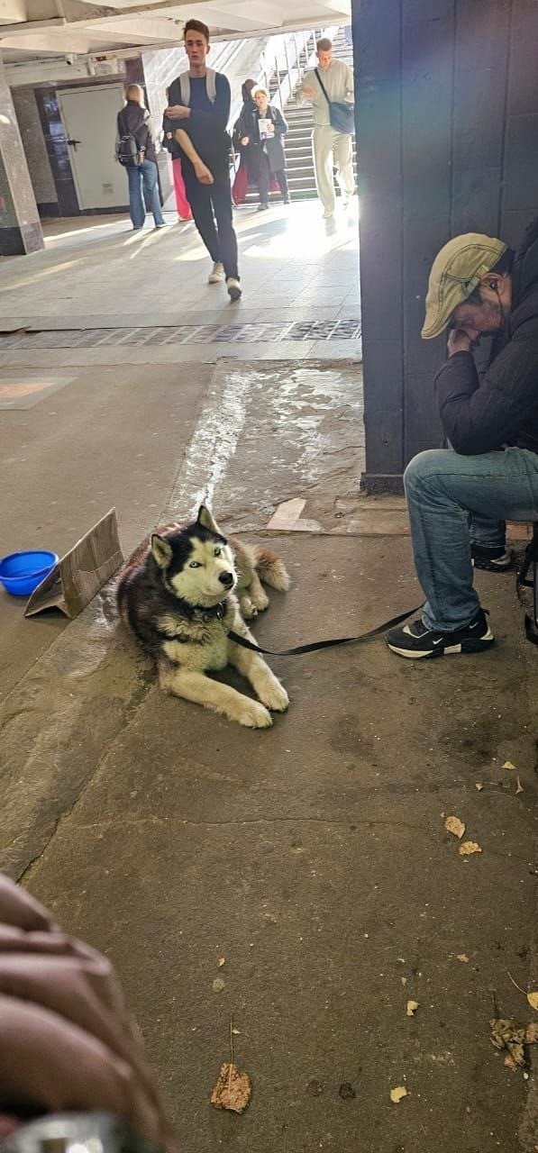 Ищем информацию про этого попрошайку с собакой. Он называет собаку Ася. Нашлась хозяйка собаки, потерявшая ее в 2023 году. Видела на Авиамоторной, в Мытищах, в Пушкино и других местах.