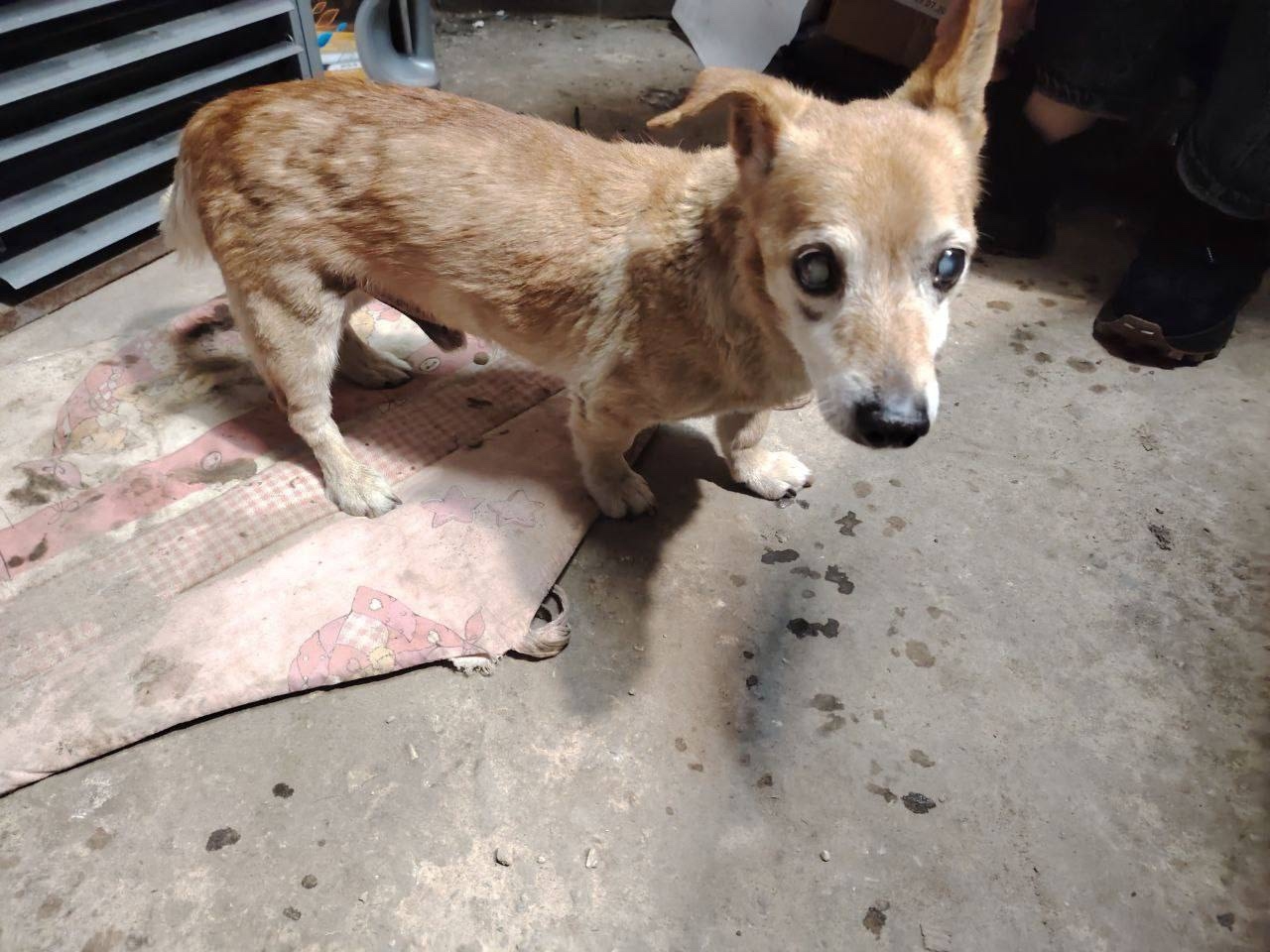 Старенький, коротколапый, подслеповатый, и явно домашний. Бедняга уже еле ходил. Живот был весь во льду!