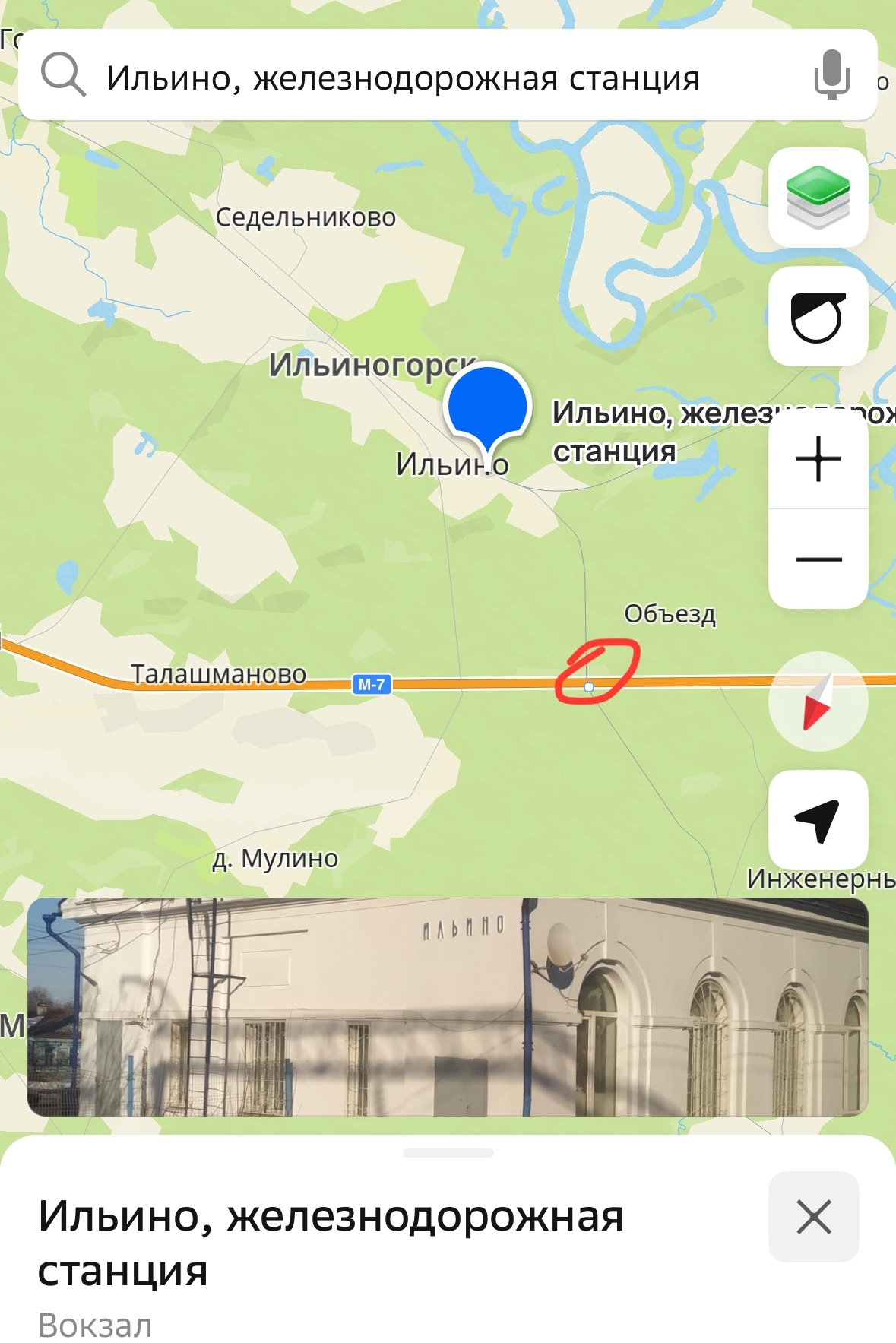 С поводком вышел по жд путям из лесополосы на трассу. Шел со стороны станции Ильино. На фото красный кружок где на трассе он оказался.