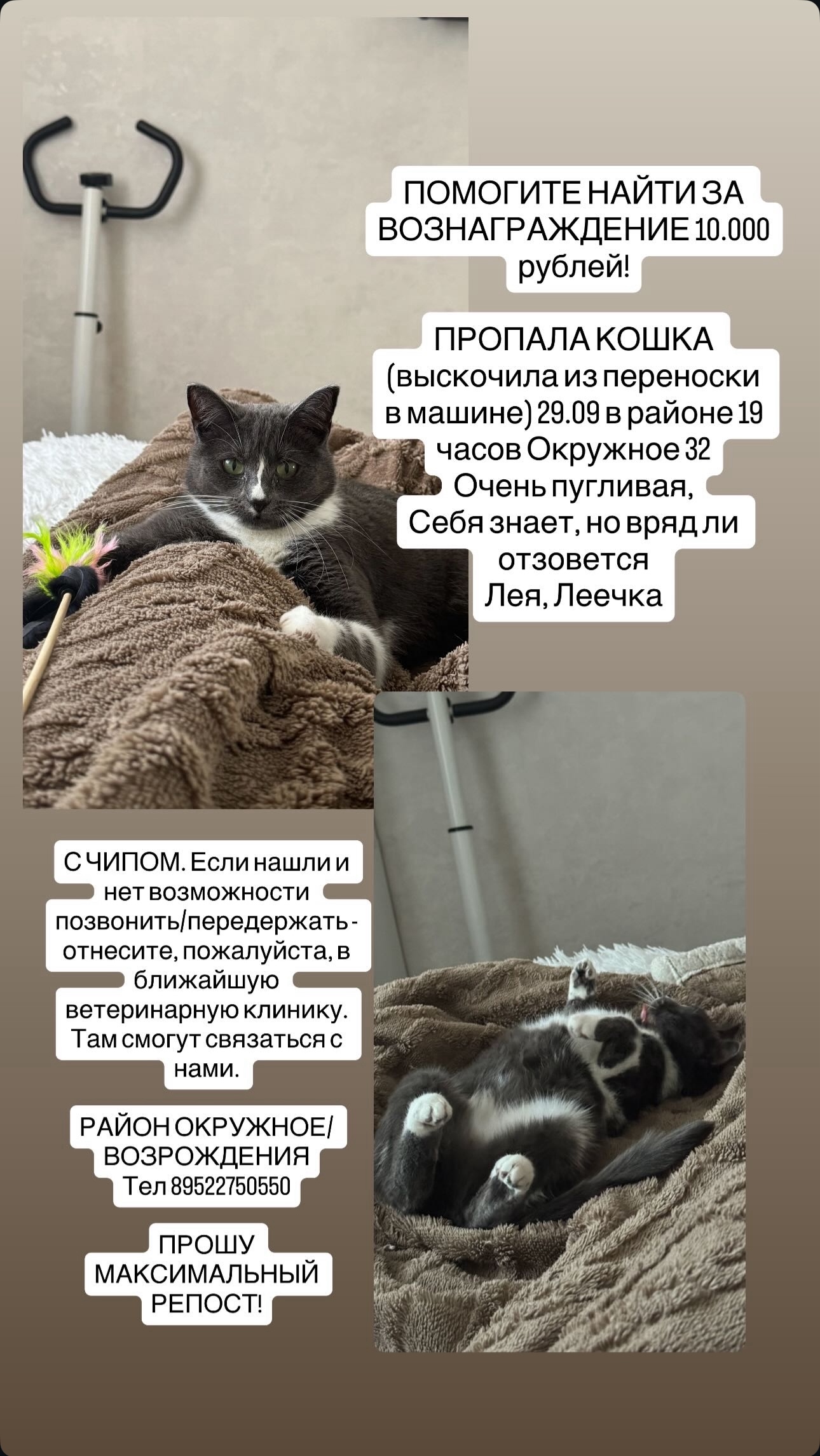 ПОМОГИТЕ НАЙТИ ЗА ВОЗНАГРАЖДЕНИЕ 10.000 рублей! ПРОПАЛА КОШКА..