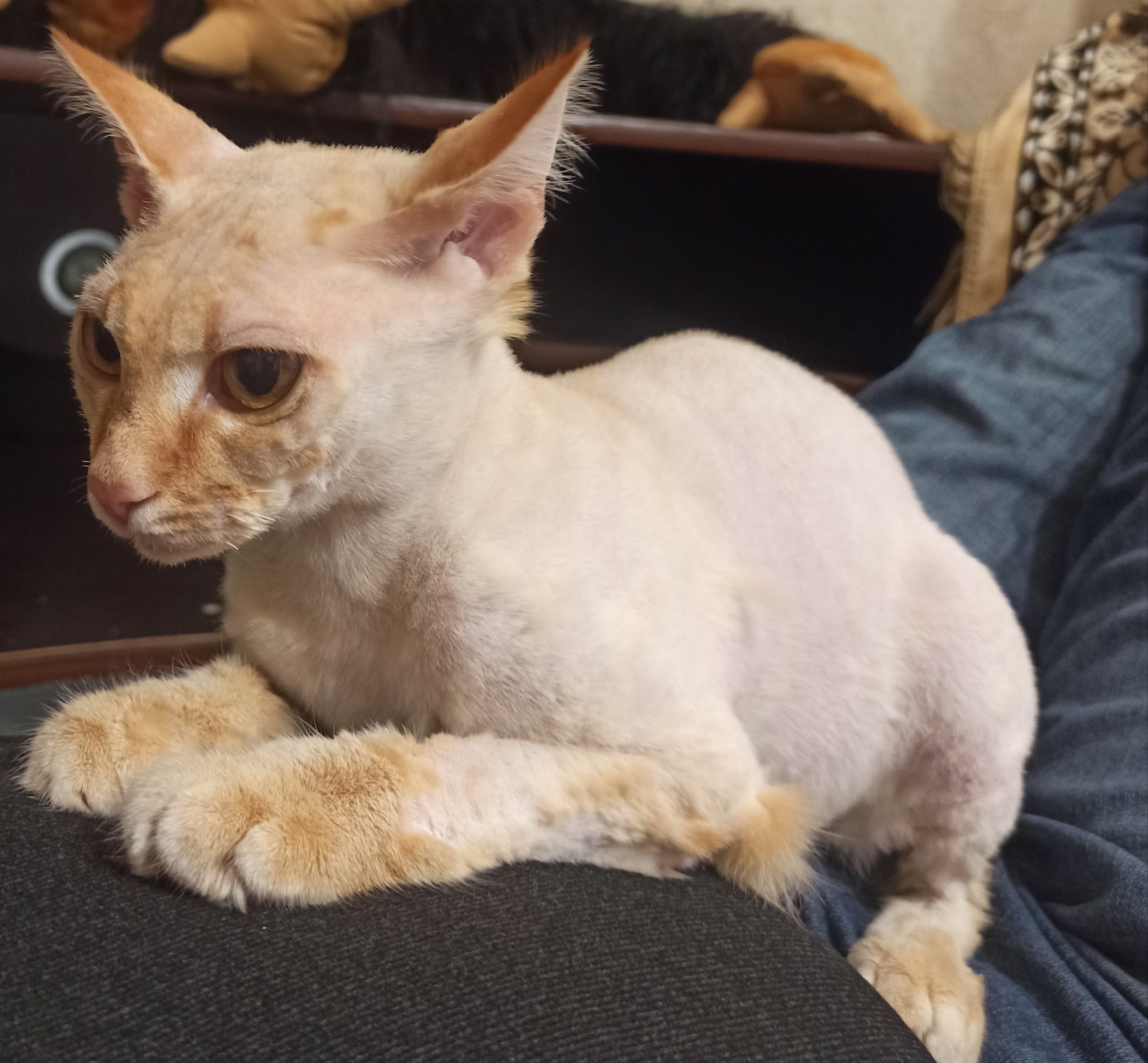 Помогите пожалуйста!жестокость людей не знает границ(на улице такой холод, впереди зима)!!!Пристраивается в добрые ручки зверски побритая кошечка,оченьласковая. К лотку приучена, от паразитов обработана, шёрстка уже отростает, порезы практически зажили. Помогу со стерилизацией и вакцинацией 89619113028, 89225474980