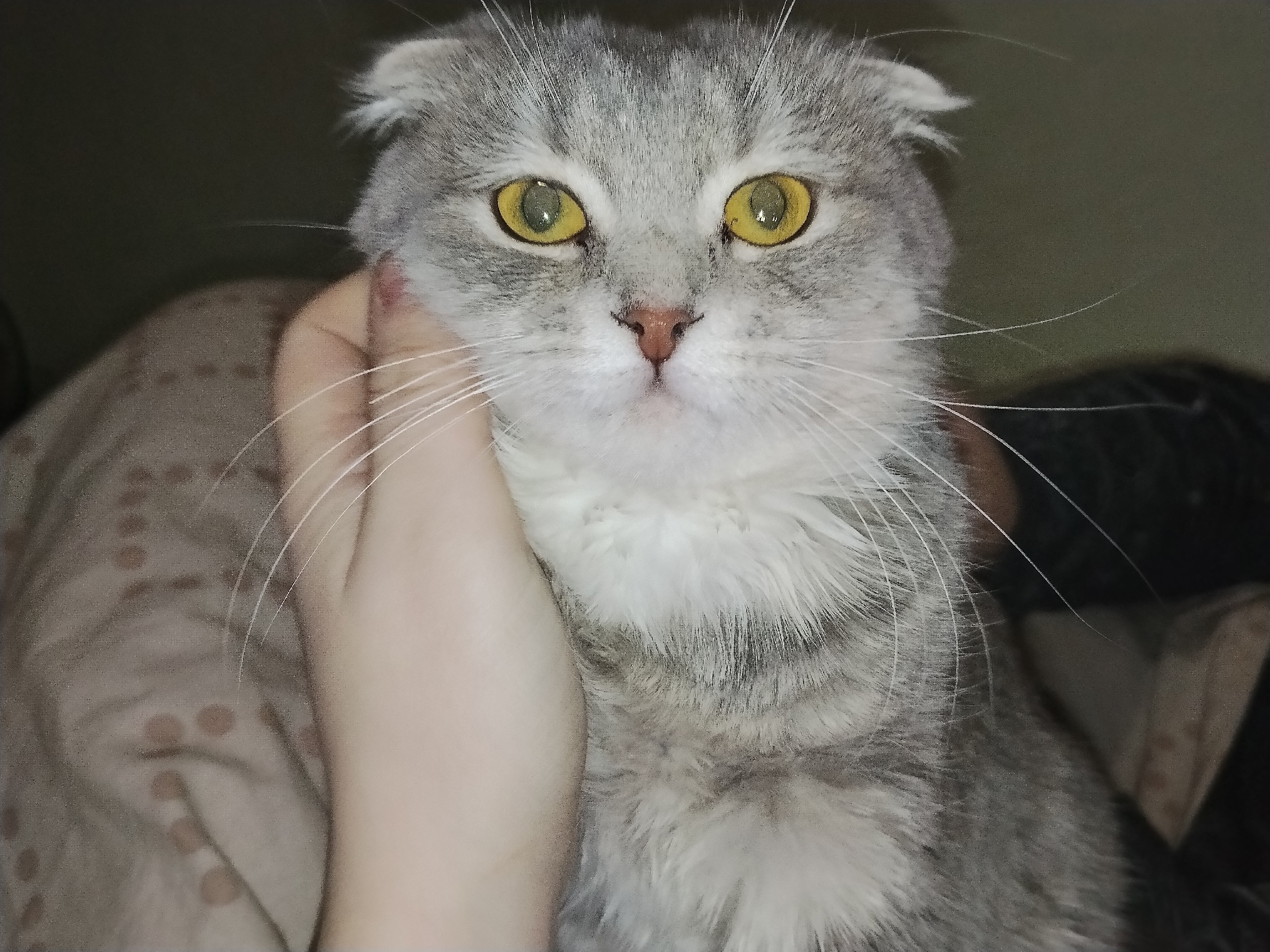 Потерялась кошка Миса 22 марта.Полосатая, вислоухая,громко не мяукает.Лапы чуть больше чем у обычных кошек,серенькая,полосатая.Людей не боится.Выпрыгнула с окна,2 этаж