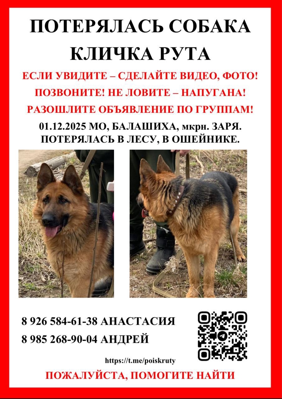 Потерялась овчарка МО, Балашиха, Мкрн. Заря 01.12.2025 Потерялась в..