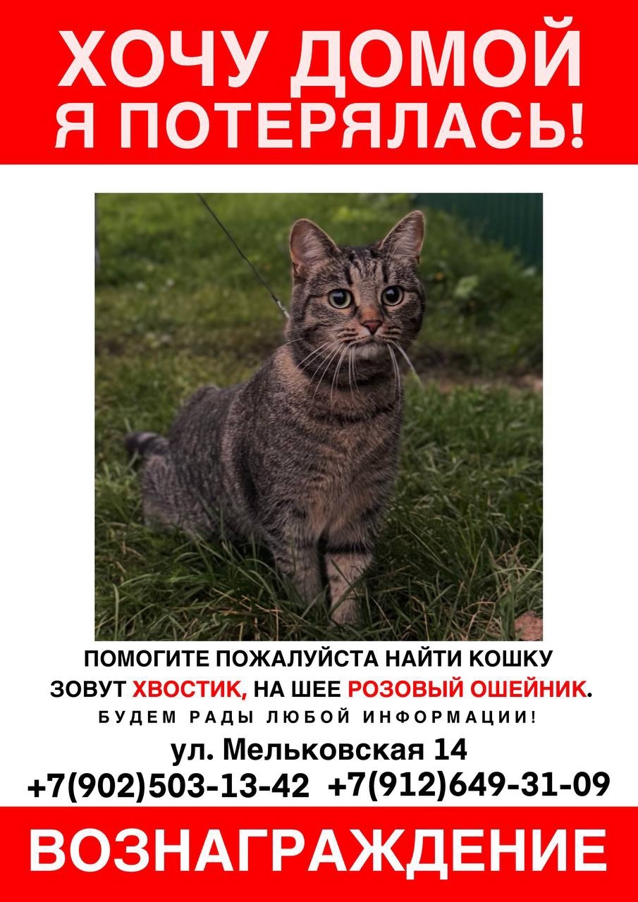 Потеряли кошку, сбежала в подъезд и кто-то выпустил. На шее..