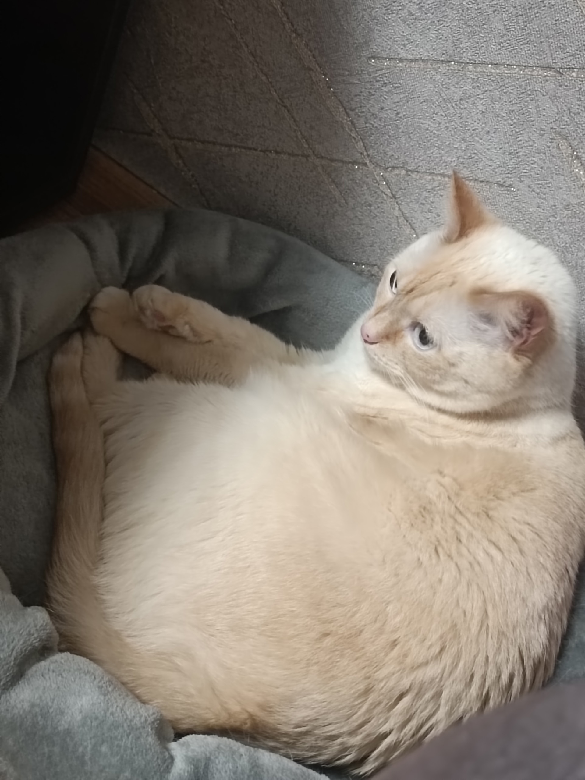 Кастрированный, сам по себе большой, ему 3 года, зовут Олаф, обычно из дома не убегал, но сегодня утром (24.02.2026) мы его не увидили, возможно вчера вечером (23.02.2026) вышел в подъезд, так как сами выходили, его вероятно могли не заметить, так как больше вариантов когда он ушёл не видим