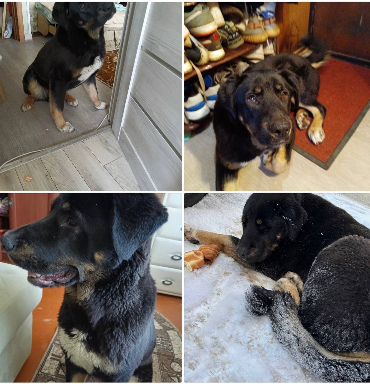 Это мальчик, его забрала добрая женщина Ольга. Первые дни все было хорошо. Но потом женщина ушла на работу и песик чуть не разнес всю квартиру. Видимо он очень боится снова остаться ненужным и выкинутым и очень прикипел к Ольге. При ней все дни он был послушный.Но ей нужно ходить на работу. А еще с самого начала у собаки очень плохой аппетит. Ольга пока не в состоянии на школьную зарплату отвести его к ветеринару. И вообще как быть с уходами на работу? Он ведь так всё жилье ей разнесет. Если бы кто мог на эти часы присматривать за песиком? И конечно же его надо показать врачу.Это не нормально, что он почти ничего не ест, даже собачьи консервы.