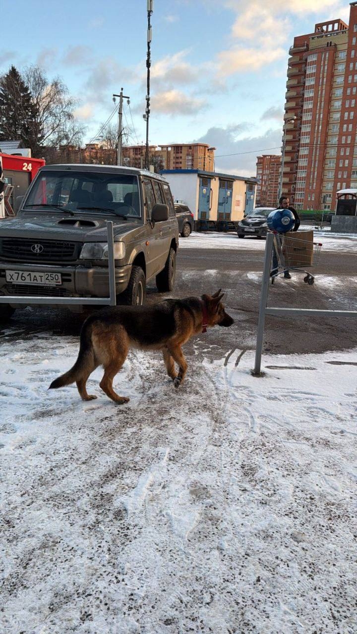 12.12.25 в районе ТЦ Евродом с. Акулово, Одинцовский округ, МО, появилась овчарка в красном ошейнике. До этого есть фото как она бежала со стороны Одинцово в сторону области по Можайскому шоссе среди машин. Придержать не удалось, не даётся. Объявлений, о розыске, пока не нашли.
