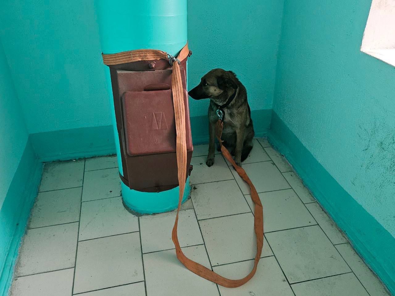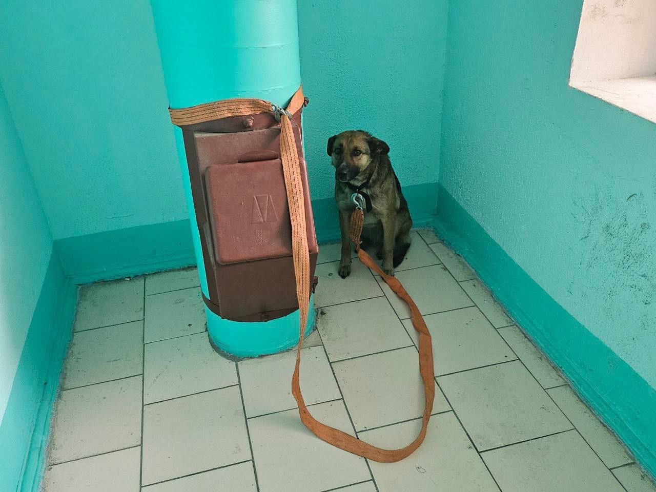 ⚠️ «Товарищи соседи, нужна помощь ибо не знаю даже что делать в такой ситуации, какой-то нехороший человек привязал собаку к мусоропроводу и повидимому оставил на погибель. Пес очень пугливый, пока что подкормили, но дальше не знаем что делать»