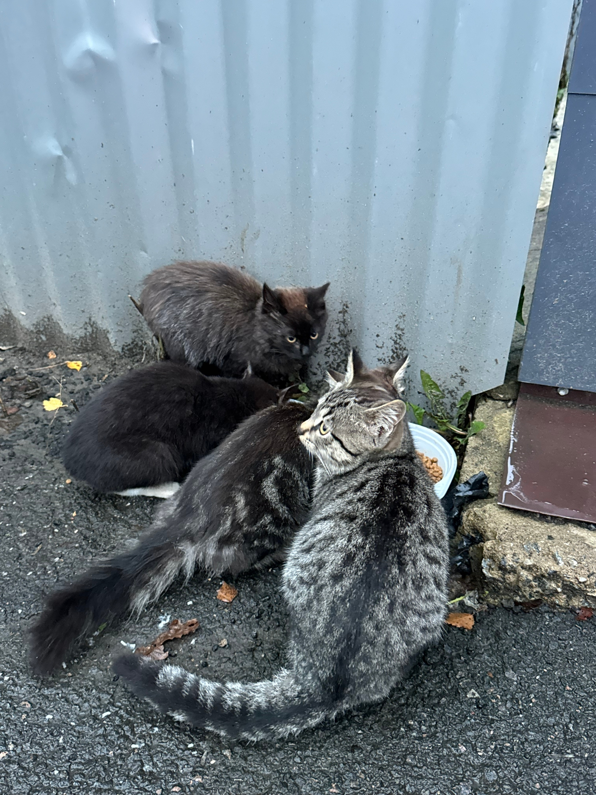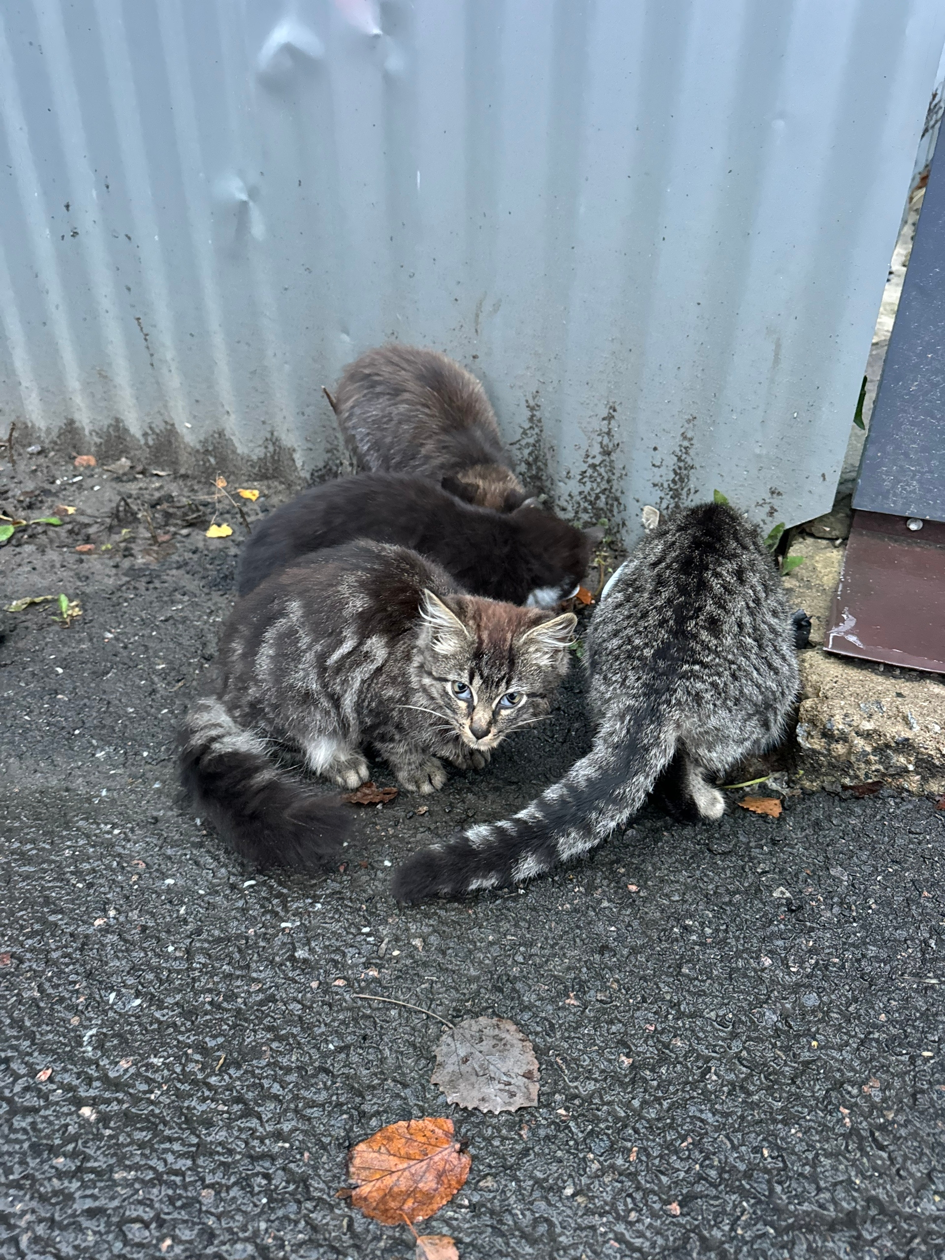 Появились котятки, мамы рядом нет. Примерно 1.5-2мес., не агрессивные, но пугливые. На днях посмотрю мальчиков и девочек. На повороте с центральной на Английскую. Тот у которого 3веко спустя два дня стало уже меньше видно. Жалко котяток, пока бандиты маленькие не теряем надежду пристроить, ведь зима близко