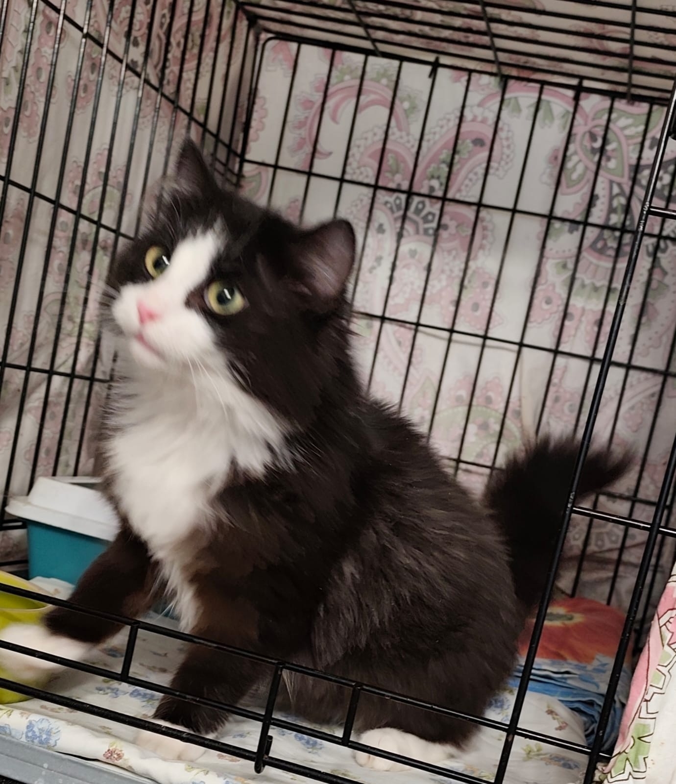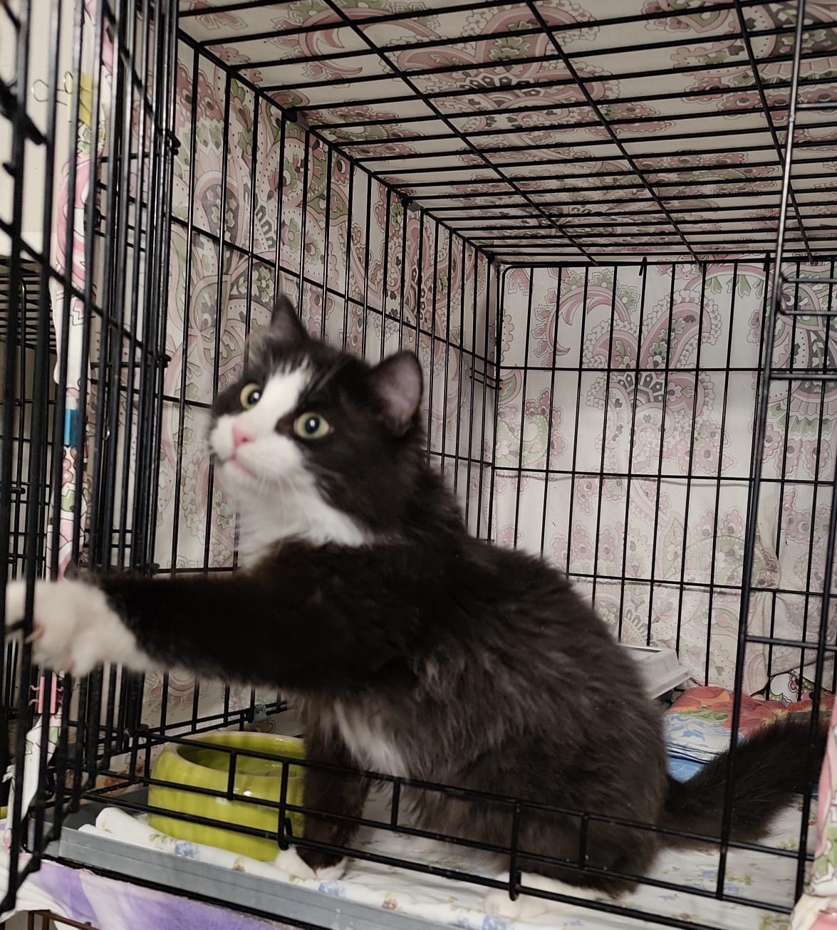 Но его детство проходит в клеточке на передержке…
